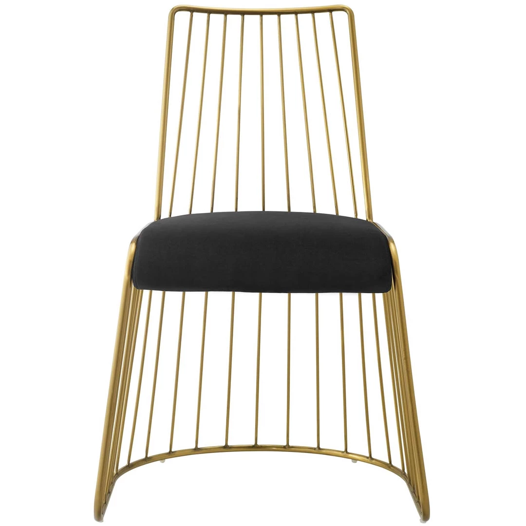 Elevate your space with the clean lines, and sleek look of Rivulet Performance Velvet Dining Chair. A stylish complement to the dining table, living room, or entryway, Rivulet innovates with a linear design crafted with brushed gold stainless steel rods, a dense foam padded seat cushion upholstered in stain-resistant performance velvet, and non-marking foot caps. Invite guests to a chic seating experience with the luxe texture and open design of this most versatile dining or accent chair. Chair Weight Capacity: 220 lbs.
