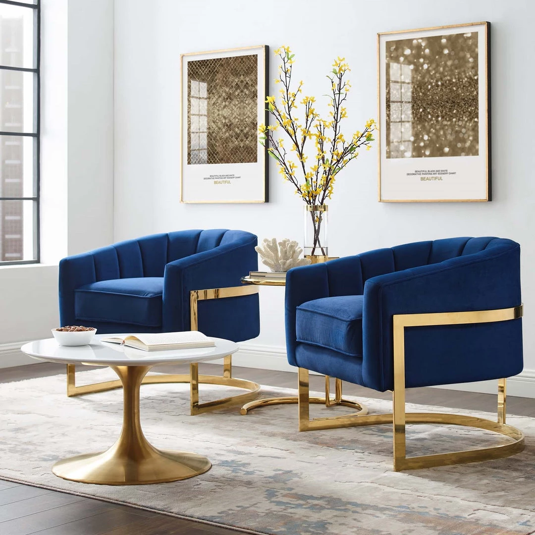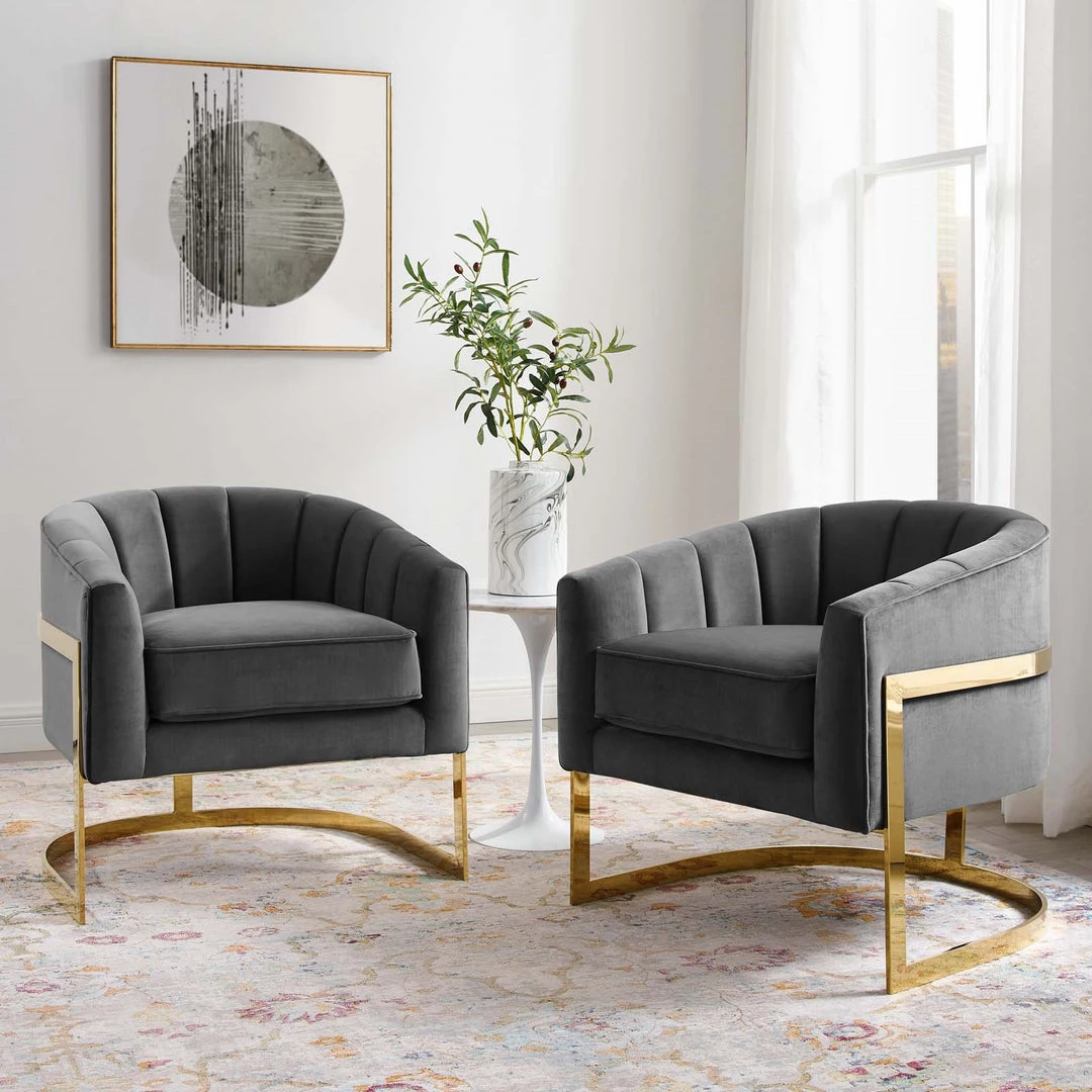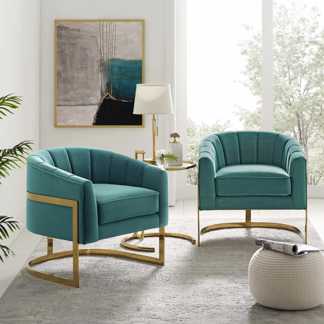 Transform your living room decor with the Proverbial Accent Armchair. The deep button tufting of Proverbial’s interior frame combined with four sturdy acrylic legs to add a visionary delight to contemporary decor. Featuring luxurious stain-resistant performance velvet upholstery, and glamorous nailhead trim, Proverbial boasts generous dense foam padding a sinuous spring support system for a premium seating experience. Enjoy your leisure time in this modern accent chair for the living room, lounge room, bedroom, or entryway.