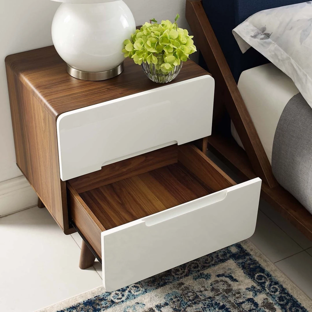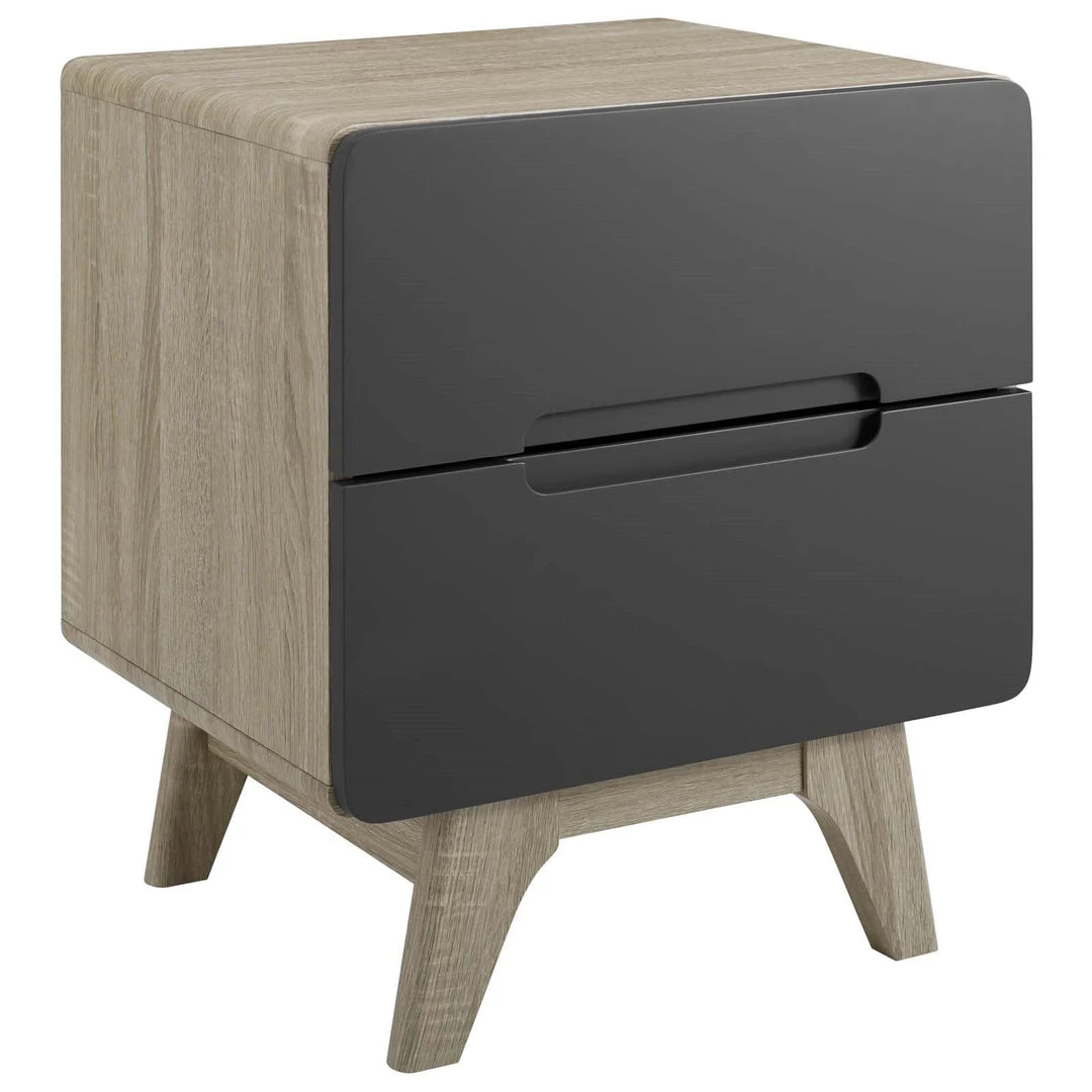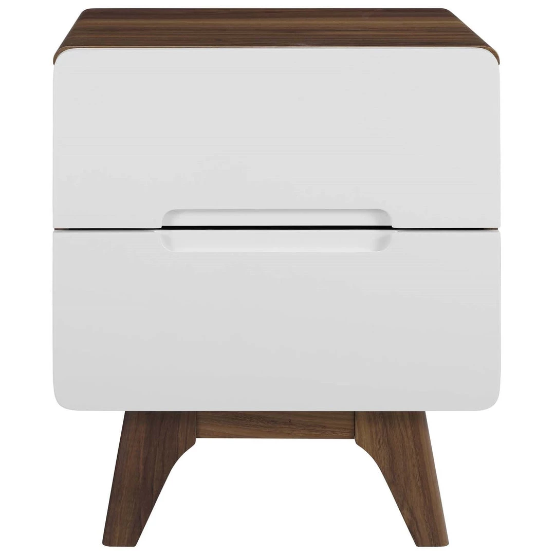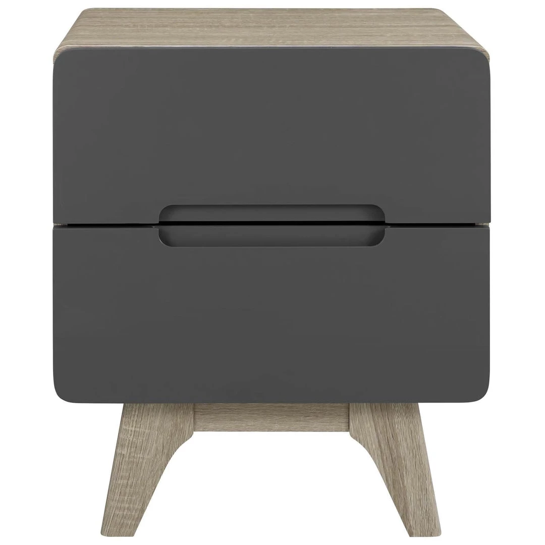 Bring the iconic energy of mid-century style to your bedroom, guest suite or living room with the Origin 47” Nightstand or End Table. Crafted with durable fiberboard for reliable support, Origin comes with a splayed frame, rounded edges, linear design, wood grain veneer, and two full-extension drawers for concealed storage. The perfect complement to your bedroom decor, display and store your books, pictures, and bedtime essentials with this contemporary modern nightstand or end table.