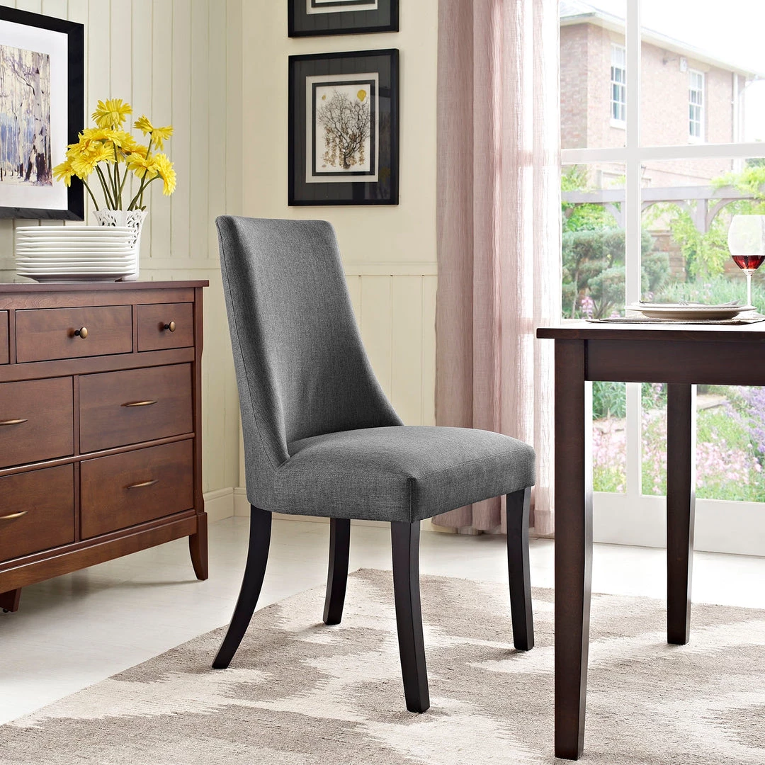 Dream effortlessly among sweeping curves and a gentle finesse reminiscent of bygone eras. The Reverie dining chair will bestow elegance to your dining scene while speaking volumes in a soft and silent way. The durable parawood legs and dense foam padding make for a sturdy addition that will help imbue your dΓ©cor with a sense of ease and pleasant calm.