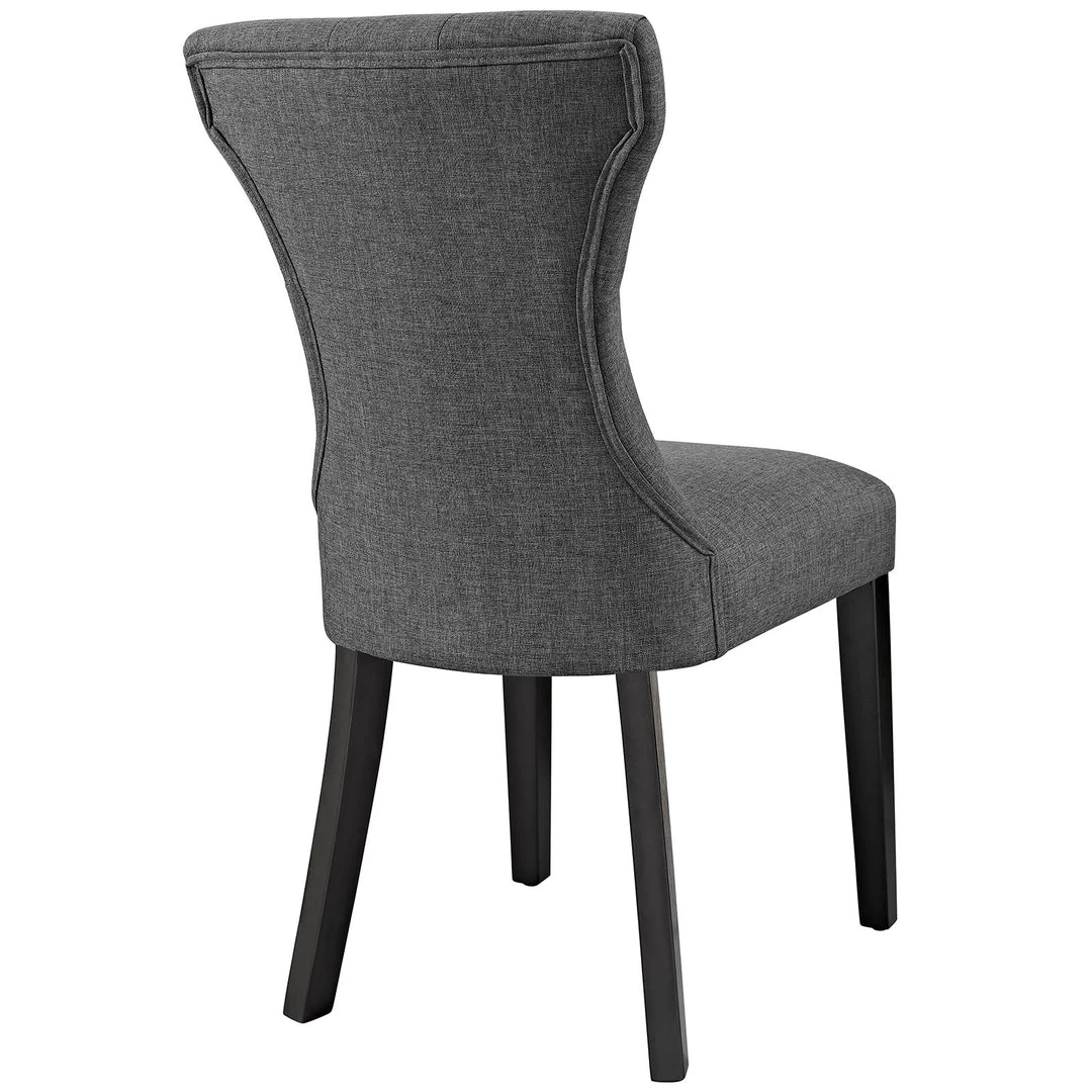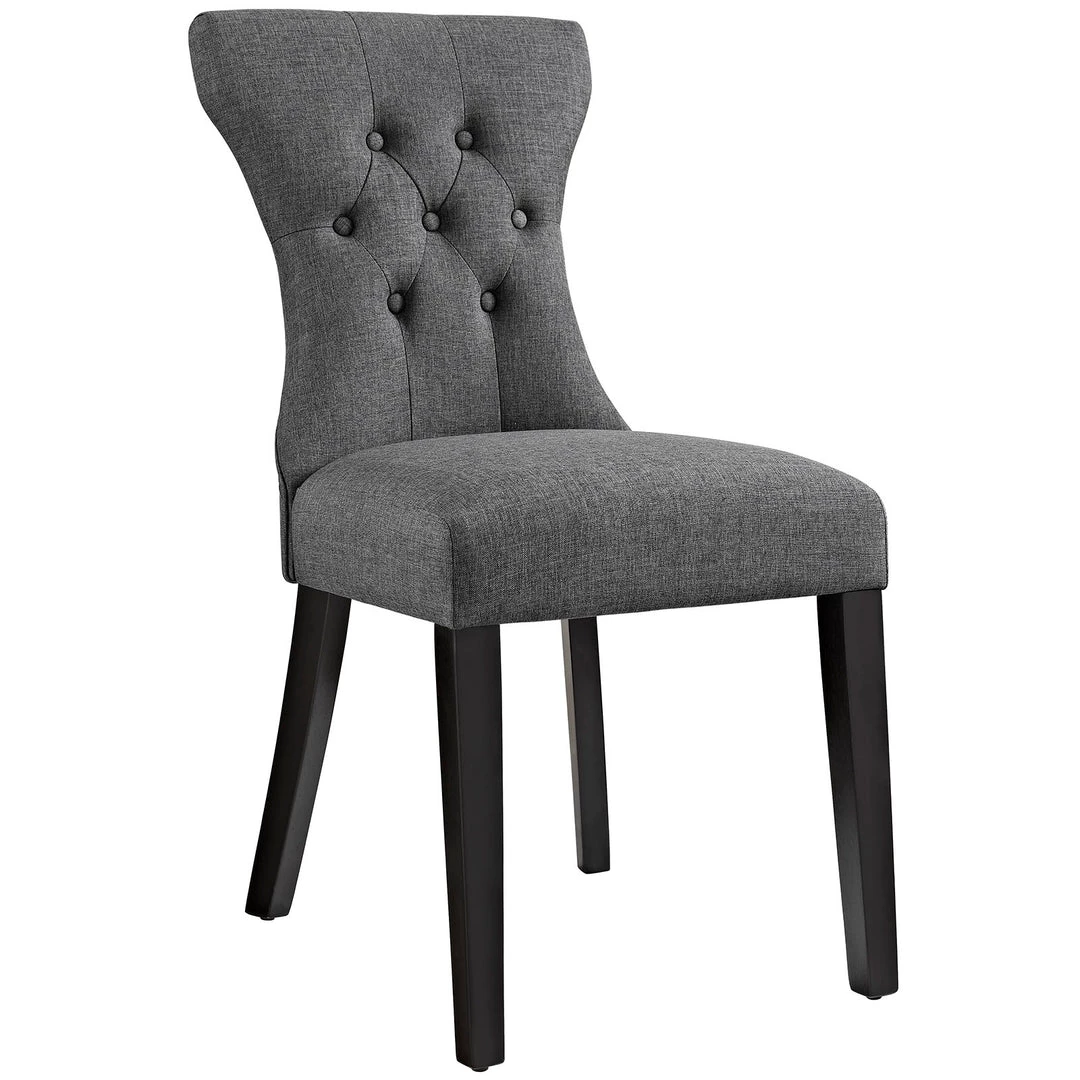 Graceful curves whisper elegance from every position. A softly tapered back and rounded hardwood legs lend distinguished support to this hourglass-shaped chair. Invite your way into the lap of luxury at every gathering.