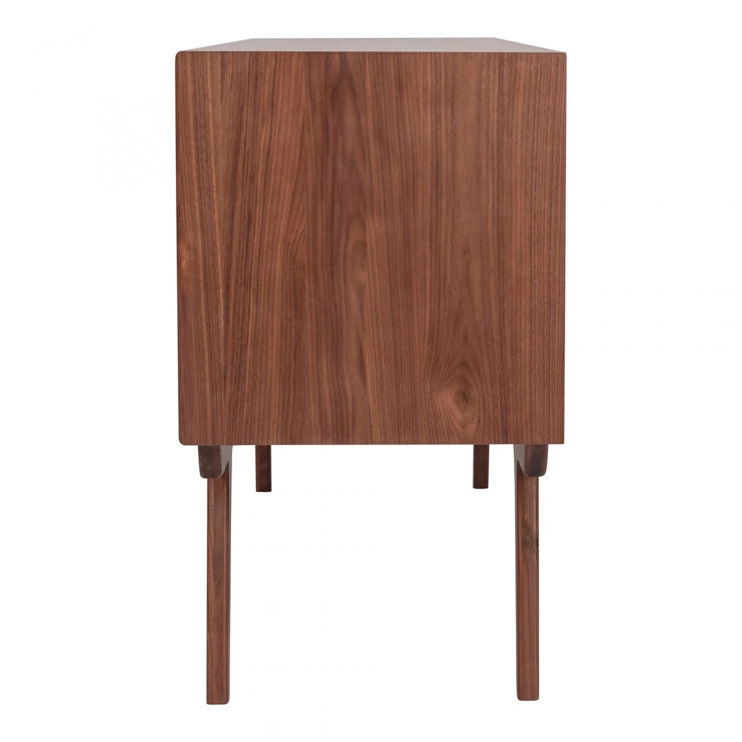 Create a contemporary look that compliments your dining room aesthetic with the Alaska Sideboard. Solid walnut legs and veneer on this buffet create a natural look that is warm and welcoming. The sliding doors provide access to your stored items, making the Alaska sideboard a sleek and functional option.