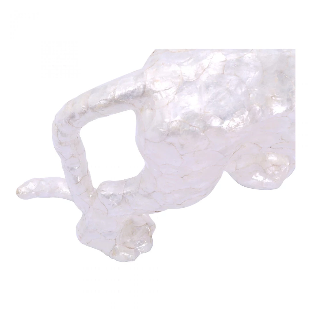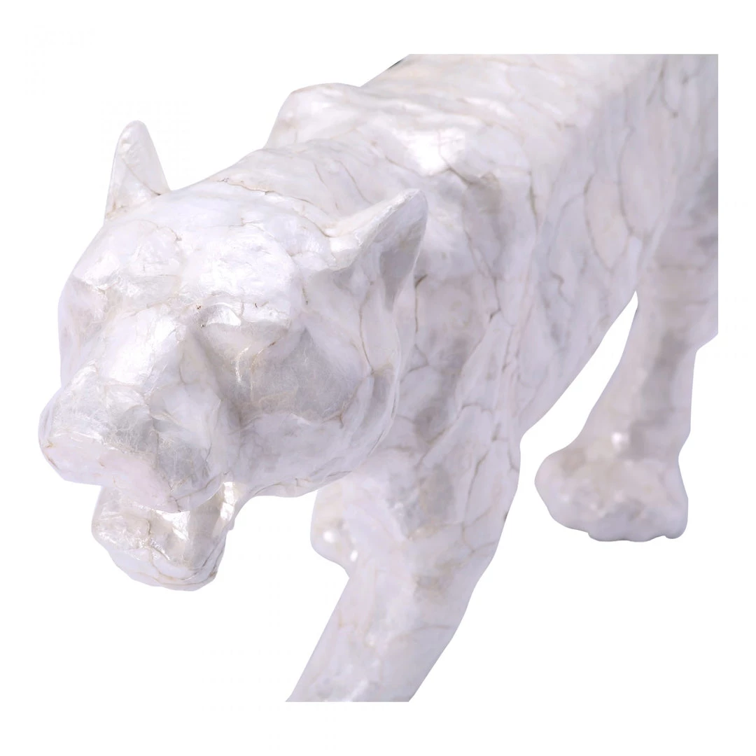 The Bengal tiger is recreated through a shell white statue. The sculpture takes on the tigers raw form, showing fierce intensity through its untamed roar. Wherever the Bengal Tiger statue is placed inside, this accent will add a contemporary touch.