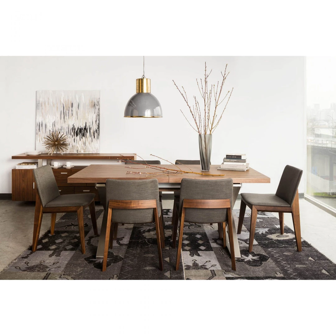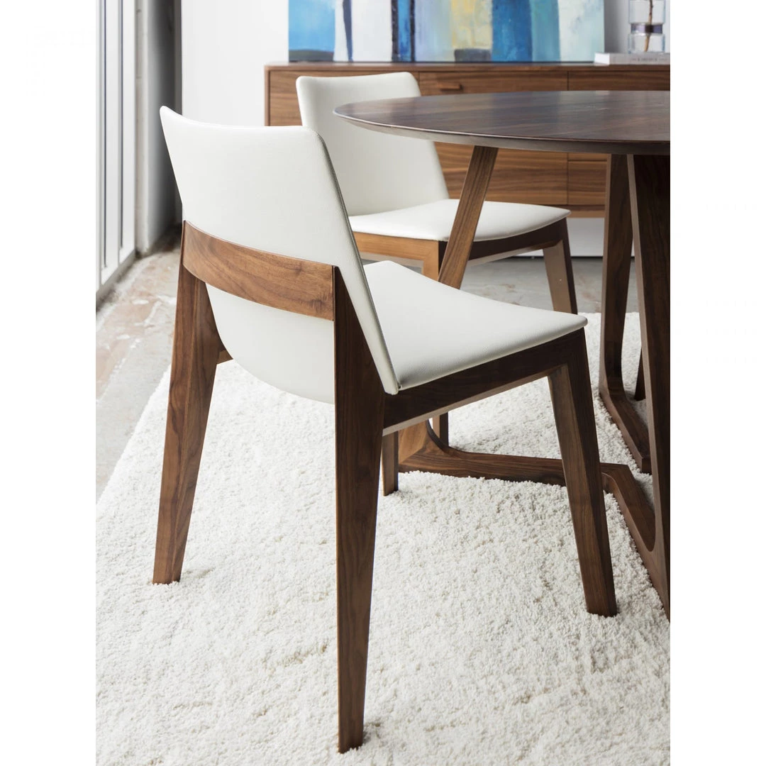 Solid American walnut with a top quality polyester upholstery seat give the Deco dining chair its stylish good looks and makes it the perfect chair for a formal or casual dining room.