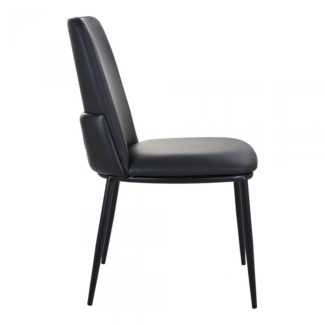 A reworked classic, Douglas takes the vintage diner chair silhouette to new, modern highs. Offering up a simple, contemporary design in top-grain leather and a slender, black powder-coated metal frame, this dining chair is ready for all sorts of soirees.