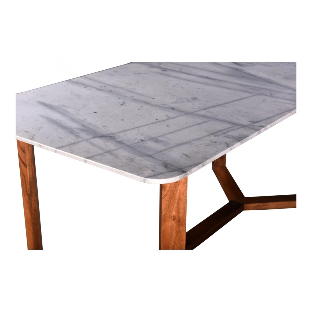 Natural materials are molded into a classic staple that will transcend any dining setting. The Jinxx rectangular dining table evokes modern simplicity with its geometric base and frame fashioned from solid Acacia wood. With spacious seating for up to six, Jinxx’s solid white marble stone top stretches out with beautiful veining and natural striations. End-to-end style, the Jinxx collection holds vast class and includes round versions of dining, end, coffee, and counter tables. Incorporating natural, uniquely designed materials with contrasting elements like warm woods and stone into your home adds not only appeal and character but naturally soothing elements to style around.