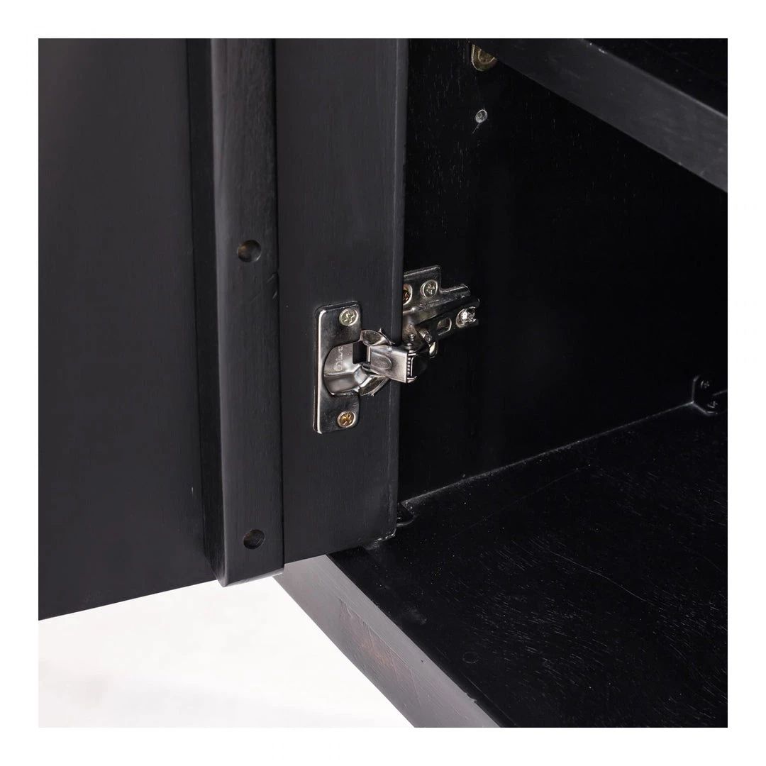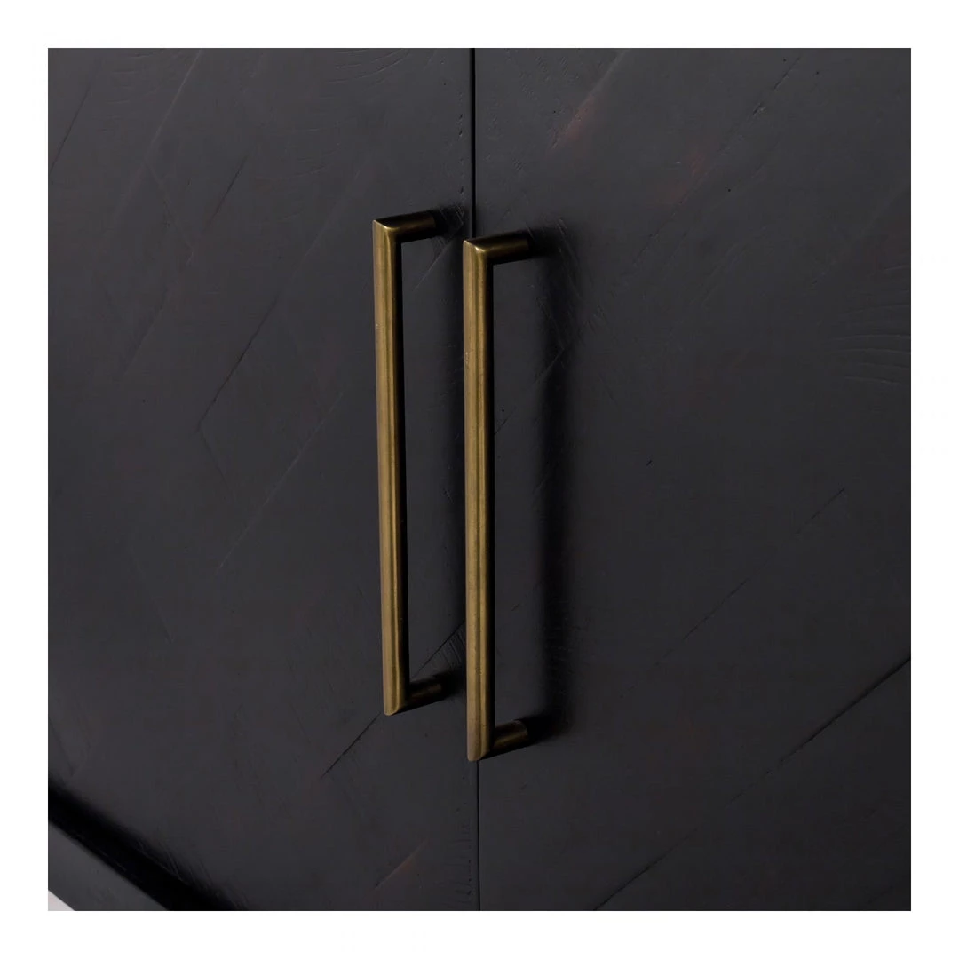The Sicily collection uses rustic wood, finished with a glossy ebony stain and a contemporary parquet pattern. The three doors open up to shelving that provides plenty of storage to keep your room neat and tidy. The buffet can also be used as an entertainment unit in the living room. Set on a matching gold base, to complete the look.