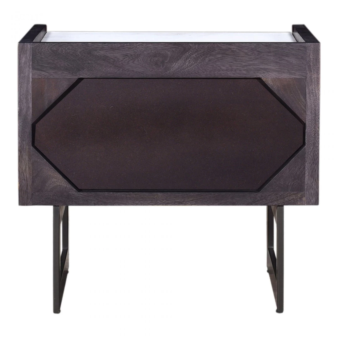 Embrace sophistication in your sleeping space with the Paloma nightstand. Its marble top mixed with a ribbed drawer and slender legs design makes it simple yet elevated. Its dark wood tones and clean lines provide an opulence feeling, perfect for the modern home.