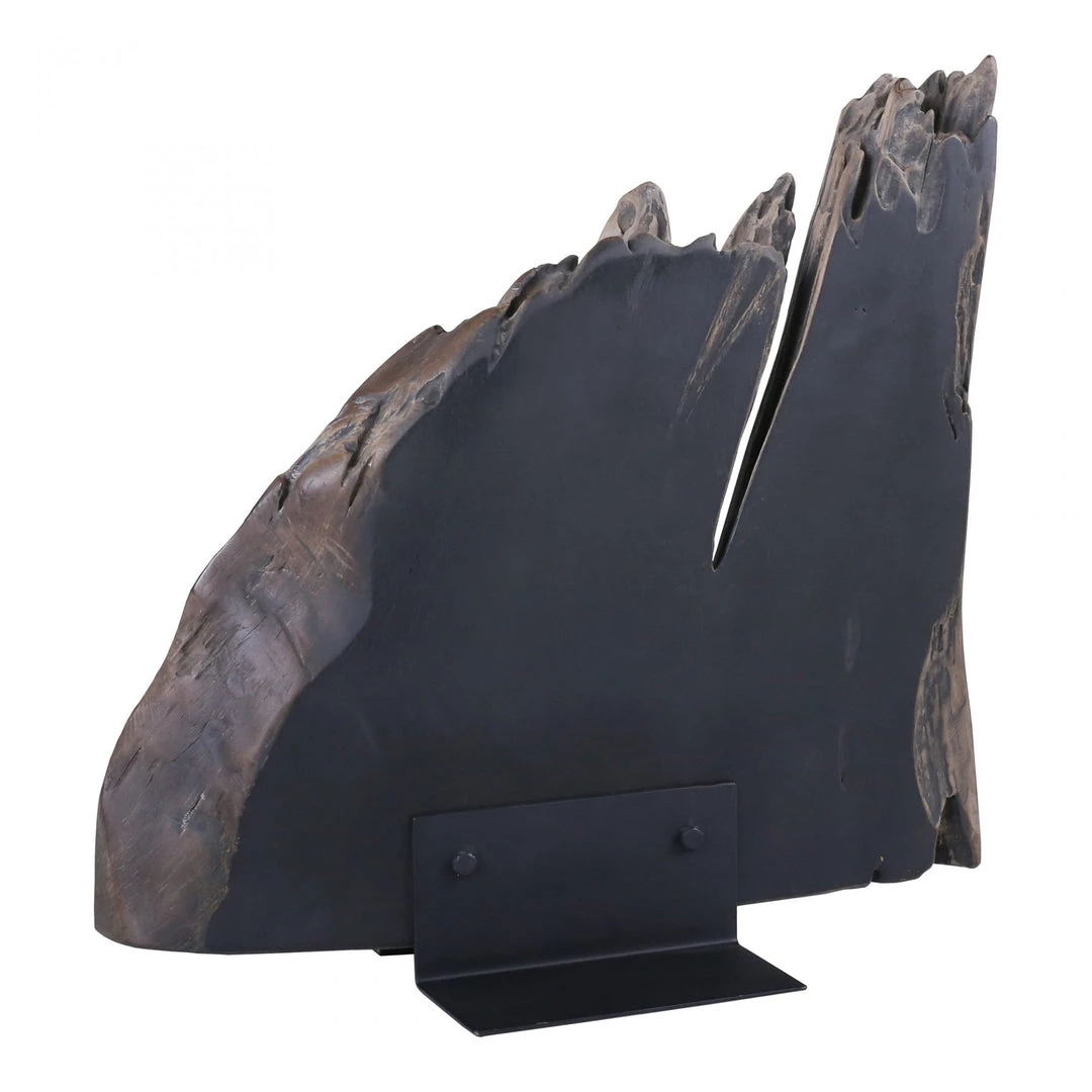 A solid piece of reclaimed teak wood, the reclaimed teak sculpture stays true to its name. Set atop an iron base, this sculpture is ideal for adding personality to your space. Due to this item’s reclaimed nature, dimensions are approximate and will vary for each unique piece. Organic design made simple.