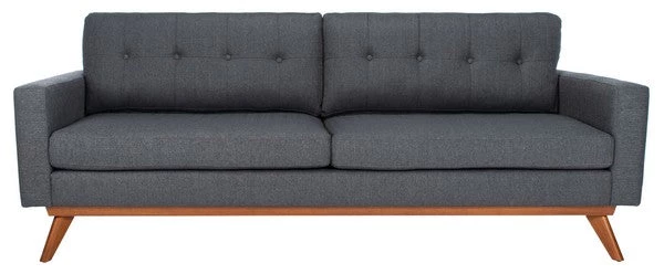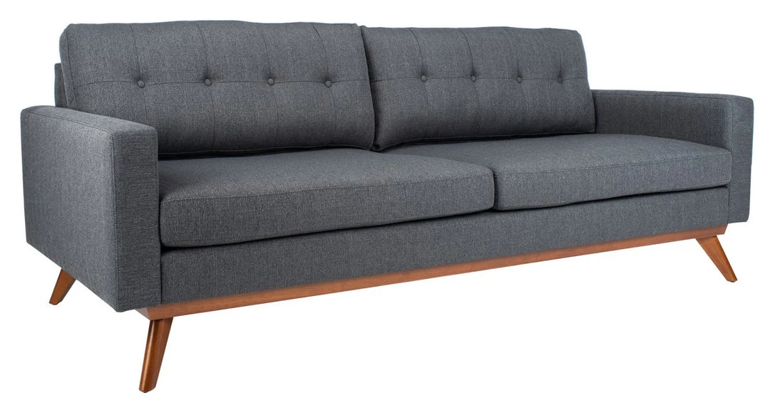 Contemporary-classic style is refashioned with an eye on retro chic in the Gneiss Modern Linen Sofa. Gneiss’s stately design of this handsome sofa is elevated in the splayed wooden frame, with tufted grey linen and soft, generously stuffed cushions offering luxurious comfort in any home.