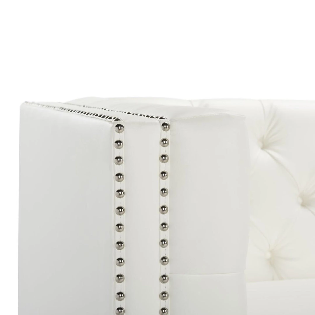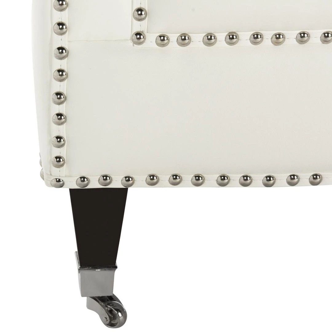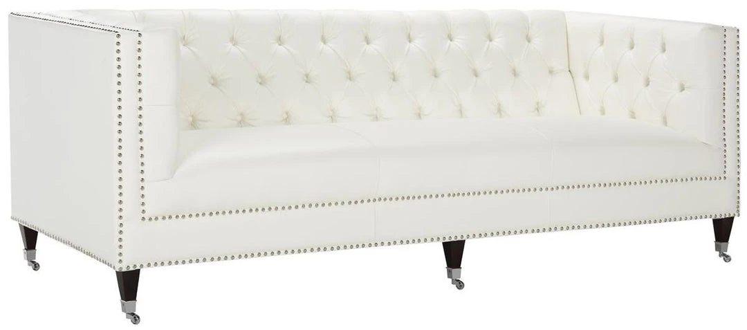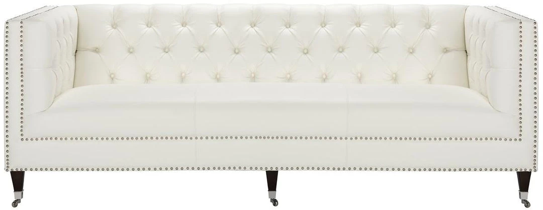 Evoking Hollywood glamour with its tuxedo style and luminous white leather, the sophisticated Miller Sofa is richly diamond tufted on its back and sides. Sitting on Chateau Brown birch wood legs, Miller commands center stage in a living room or master suite.