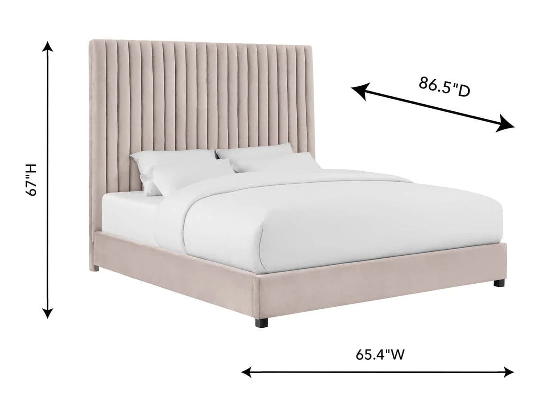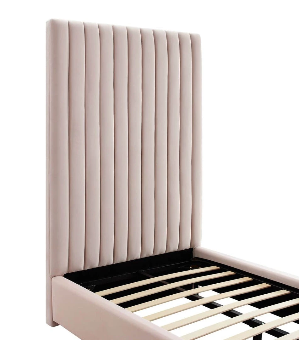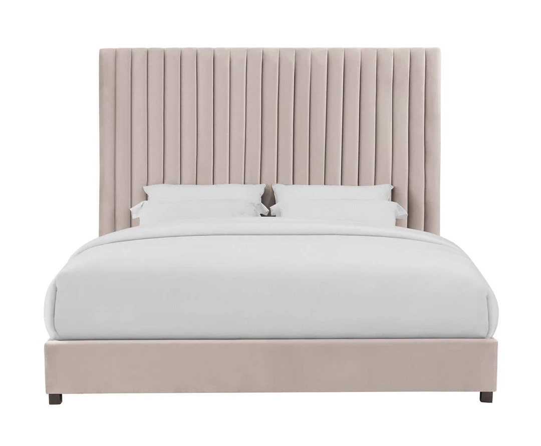 Yes, taller is better. We’ve reached a whole new level with the Arabelle bed and its impressive stately, channel-tufted frame. Completing the look, we upholstered this dreamy piece with trending velvet upholstery in gorgeous grey or sumptuous sea blue. Available in king, queen or full options.