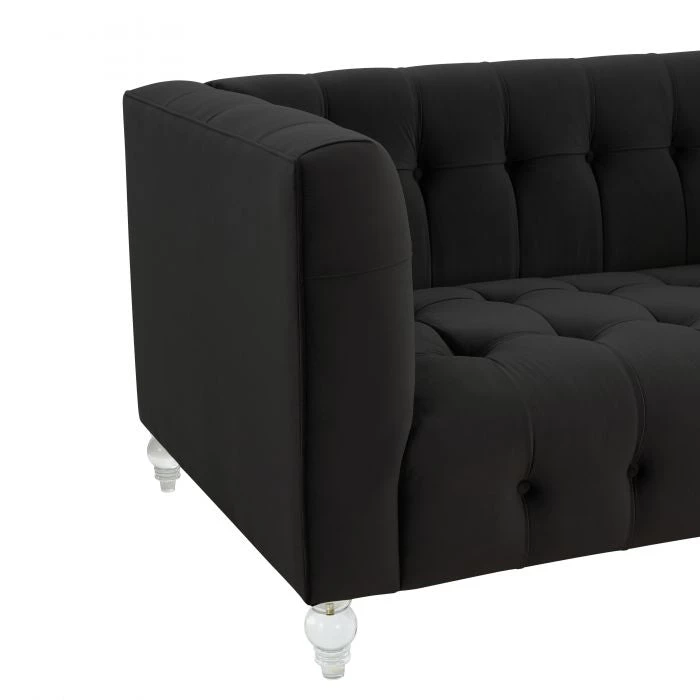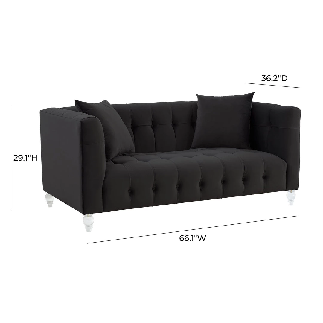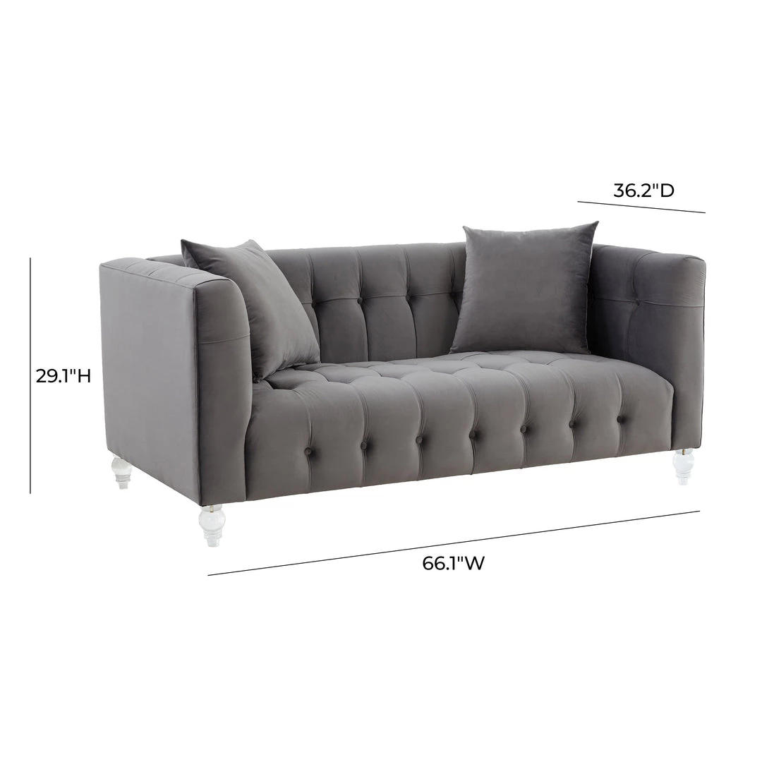 Our Bea Loveseat is a true beauty. This rich velvet upholstered piece is designed with a deep seat, luxe tufting, and Lucite legs. Bea adds style and color to any room. This vibrant piece comes in sofa size and multiple color options.