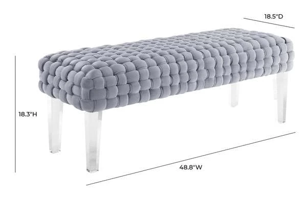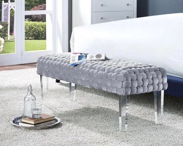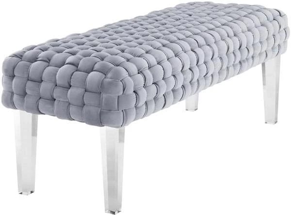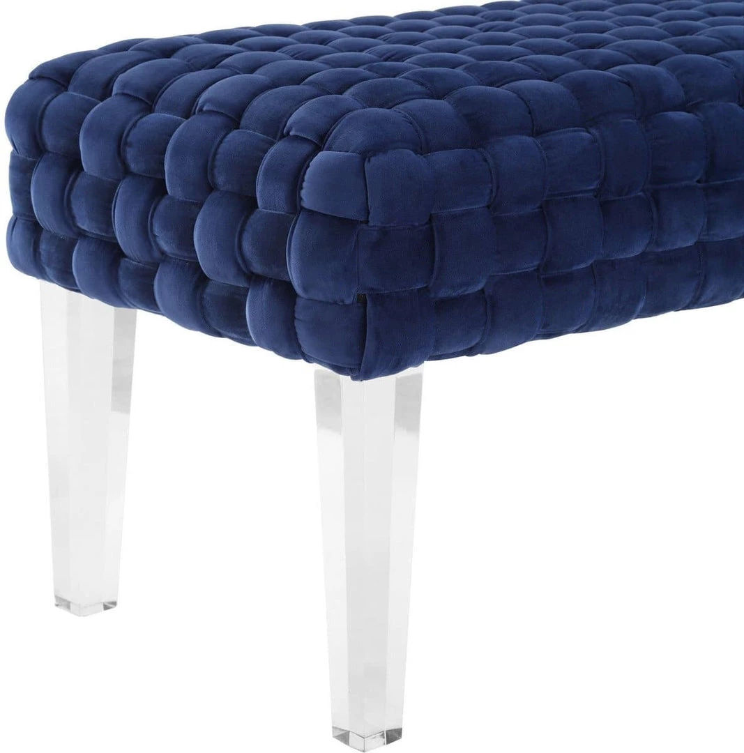 After sneaking a peek at our Sal bench remember to breathe. The intricate hand applied weave of plush velvet atop glamorous acrylic legs has that kind of effect on people. It’s just that beautiful. So remember, inhale and exhale.