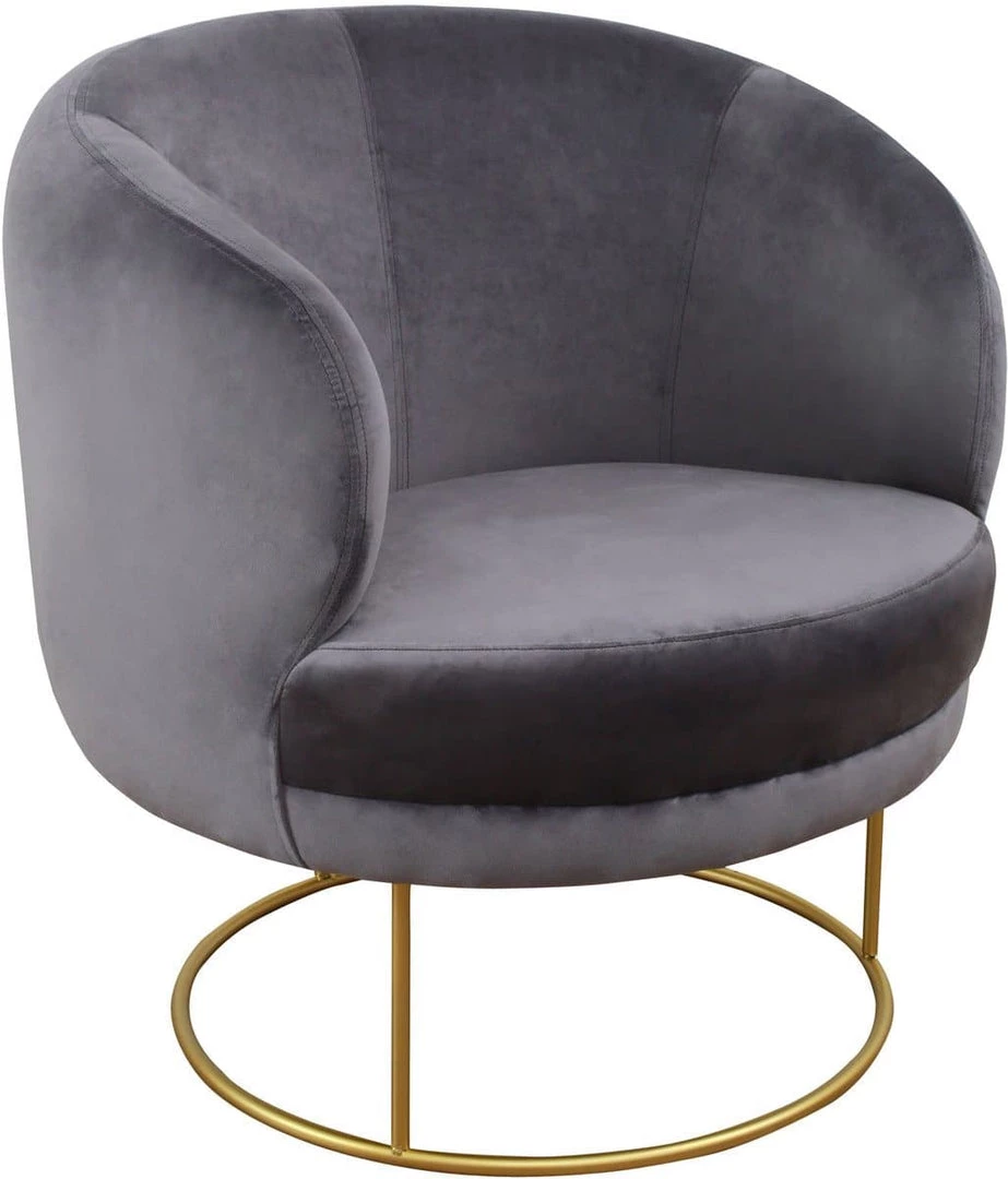 This refined club chair envelopes you in luxury and comfort with velvet upholstery, a beautifully contoured back, and ample foam padding wrapped. A gold finish on its round, recessed base contrasts beautifully with the pastel color of the velvet. Available in multiple color options.