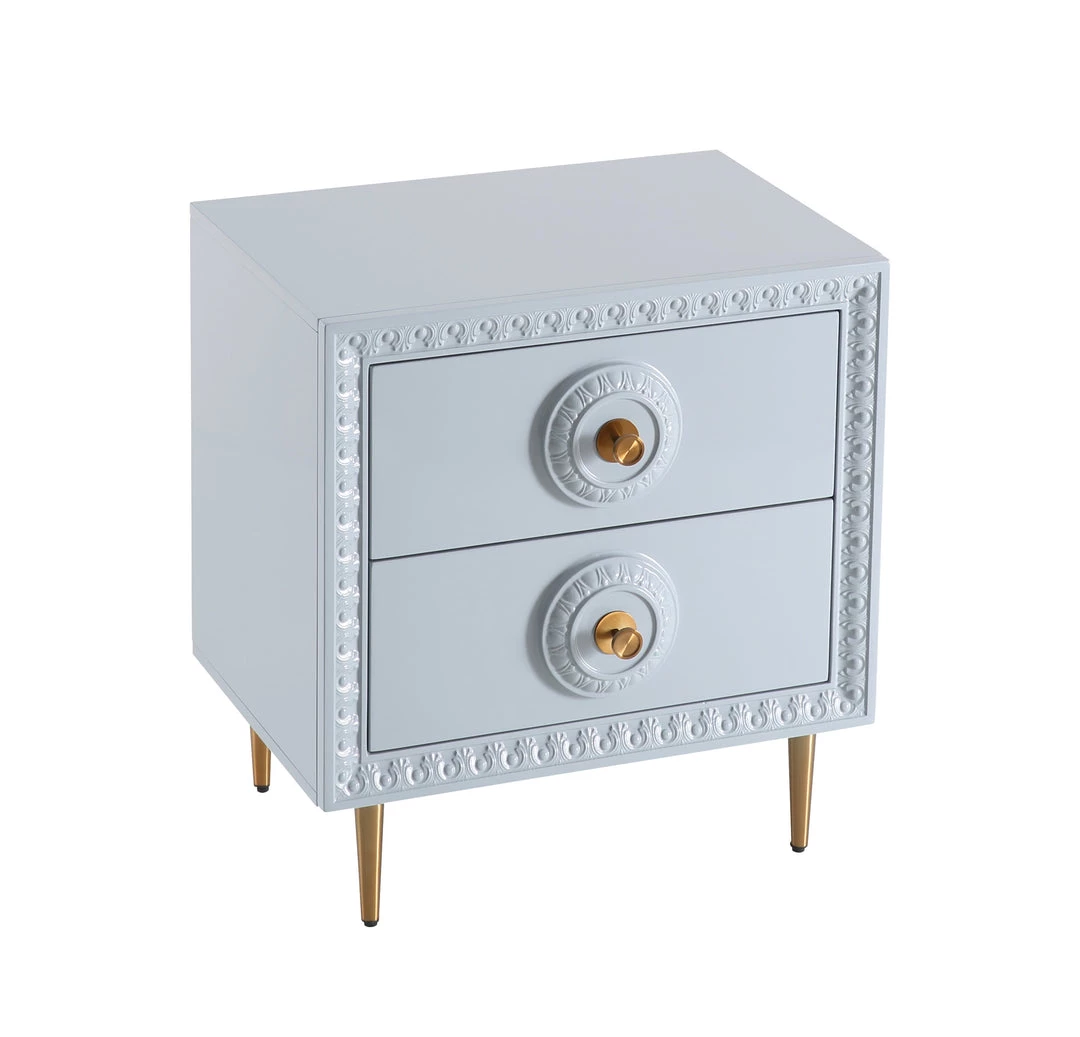 Add an element of fabulously glam fashion with the Bovey side table. Featuring a lacquer finish with intricate molding, gold hardware and tons of storage space, it’s available in two colors to suit your fashionable taste.