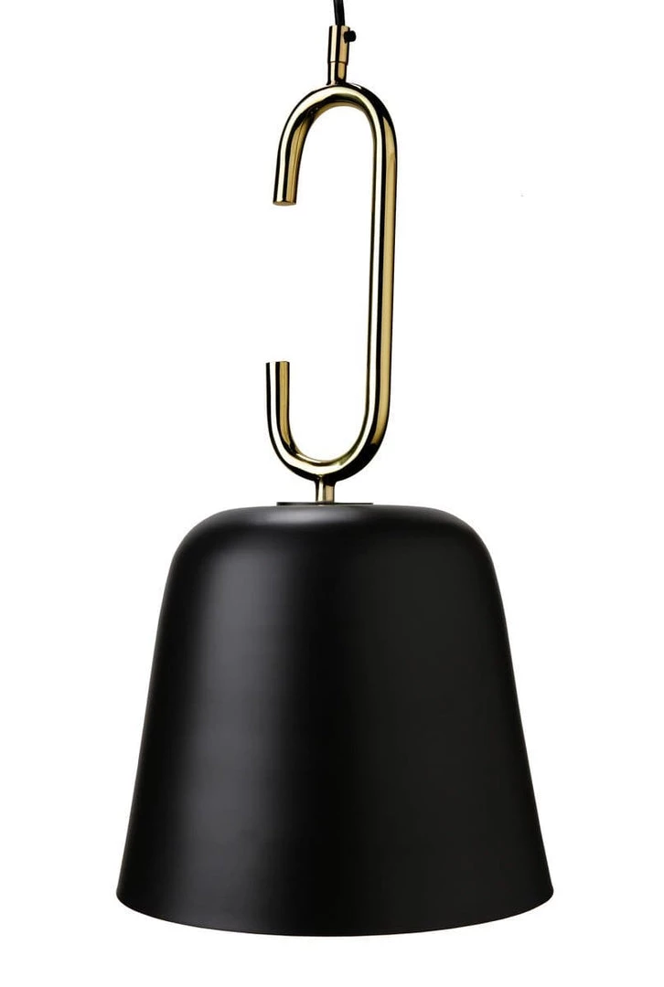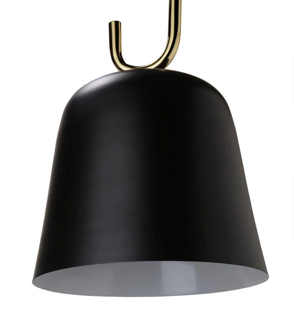 Charming on its own and even more impactful in multiples, this black and brass pendant features a classic conical silhouette supported on a brass ring. Hardwired.