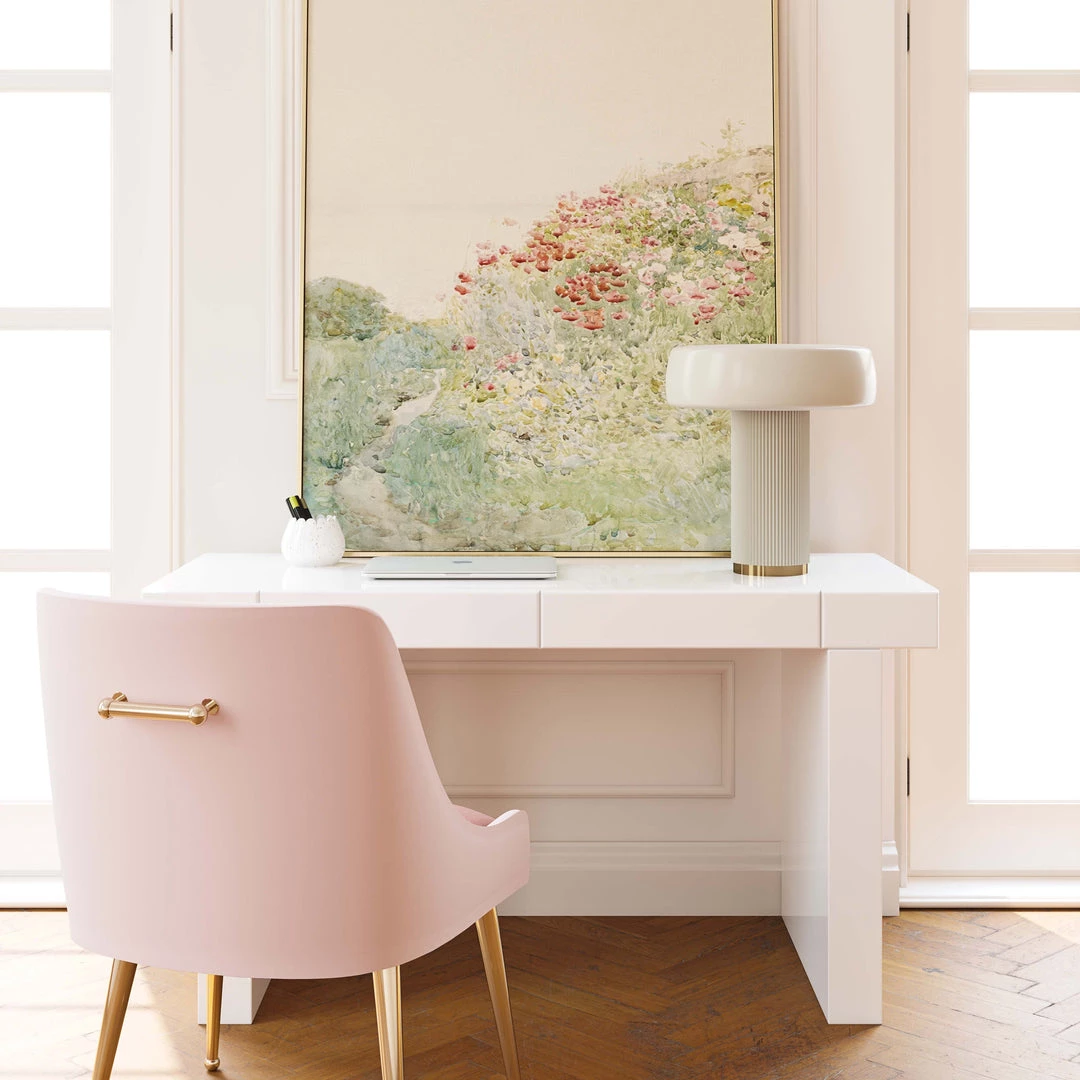 The elegant and versatile Clara desk brings timeless style and ultimate functionality to your work space. This simplistic yet modern desk has a durable wooden frame and a beautiful glossy lacquer finish, it will perfectly complement any space!