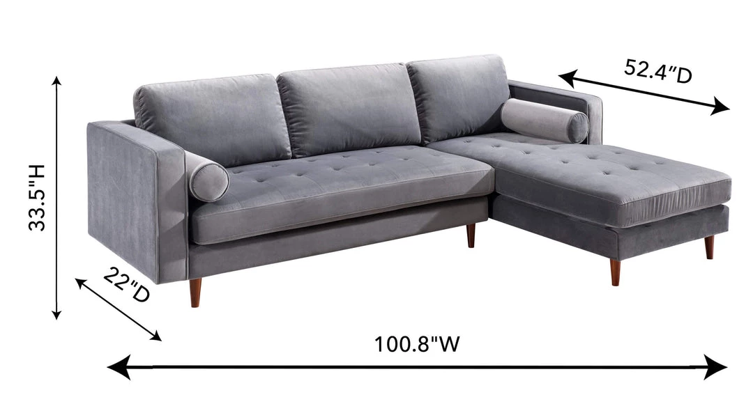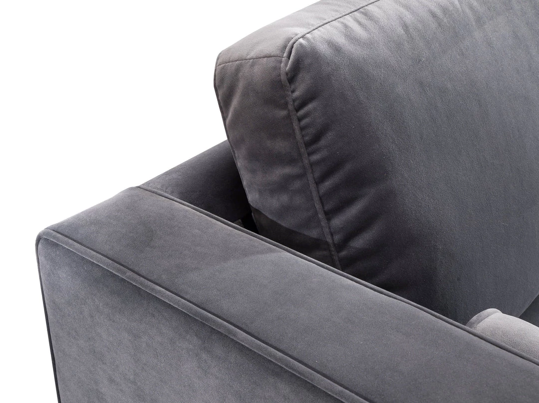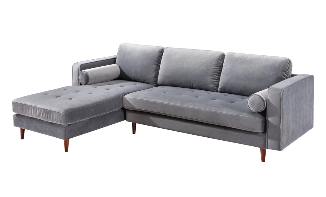 The beautiful mid-century designed Como sectional offers relaxation and style. Featuring removable cushions upholstered in sumptuous velvet, this handsome sectional is available in grey or navy options and either RAF or LAF configuration.