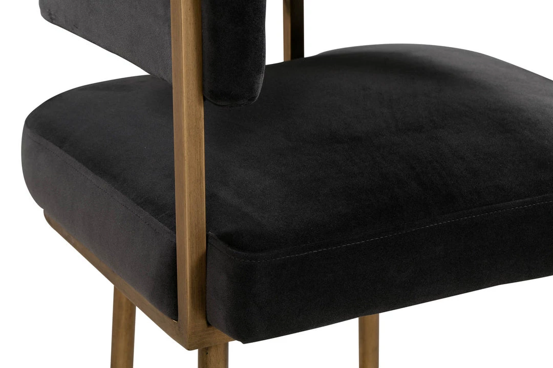 Perfect for an elegant entertaining ensemble or a casual weeknight meal, the Astrid collection is sure to elevate your dining or kitchen space. Boasting rich upholstery, rolled arms and an exposed frame finished in antique brass. Available as a dining chair or stool in both bar and counter heights.