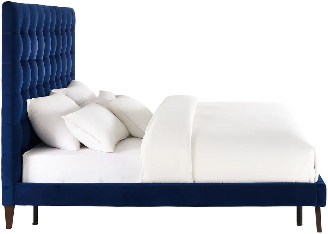 Drawing inspiration from vintage-classic design, we introduce the Eden Bed. Carefully-aligned button tufting and rich velvet color options bring sophistication and charismatic personality to the bedroom. Retro styled legs flaunt an interesting twist to this otherwise classic piece.