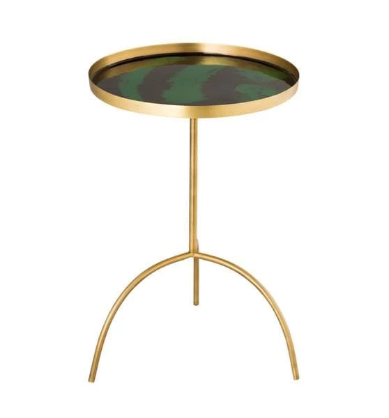 Crafted from gold-finished iron and flaunting a unique enamel top, this accent table is offered in two color options to match your fabulous style.