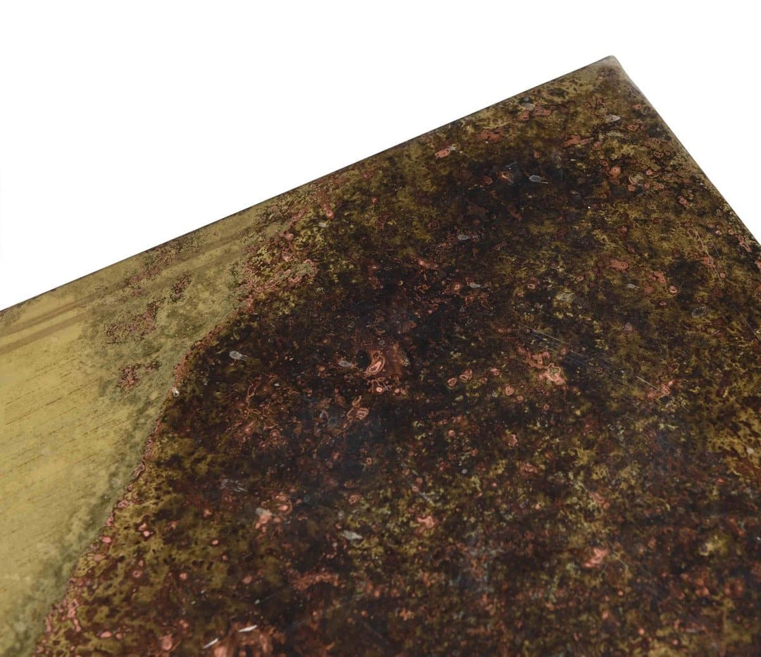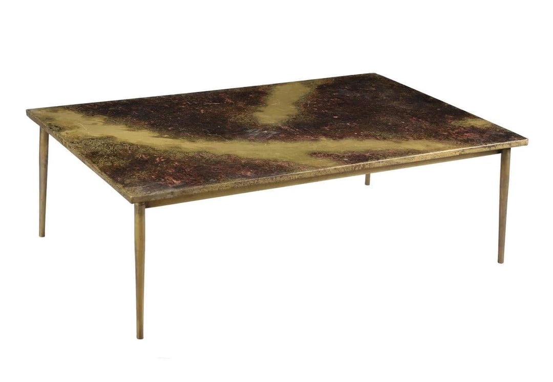 Supported by tapered iron legs, the undeniable focal point of this artisan-crafted cocktail table is its unique top with its galaxy-like finish. Its clean lines and sleek design make it an easy addition to any space.