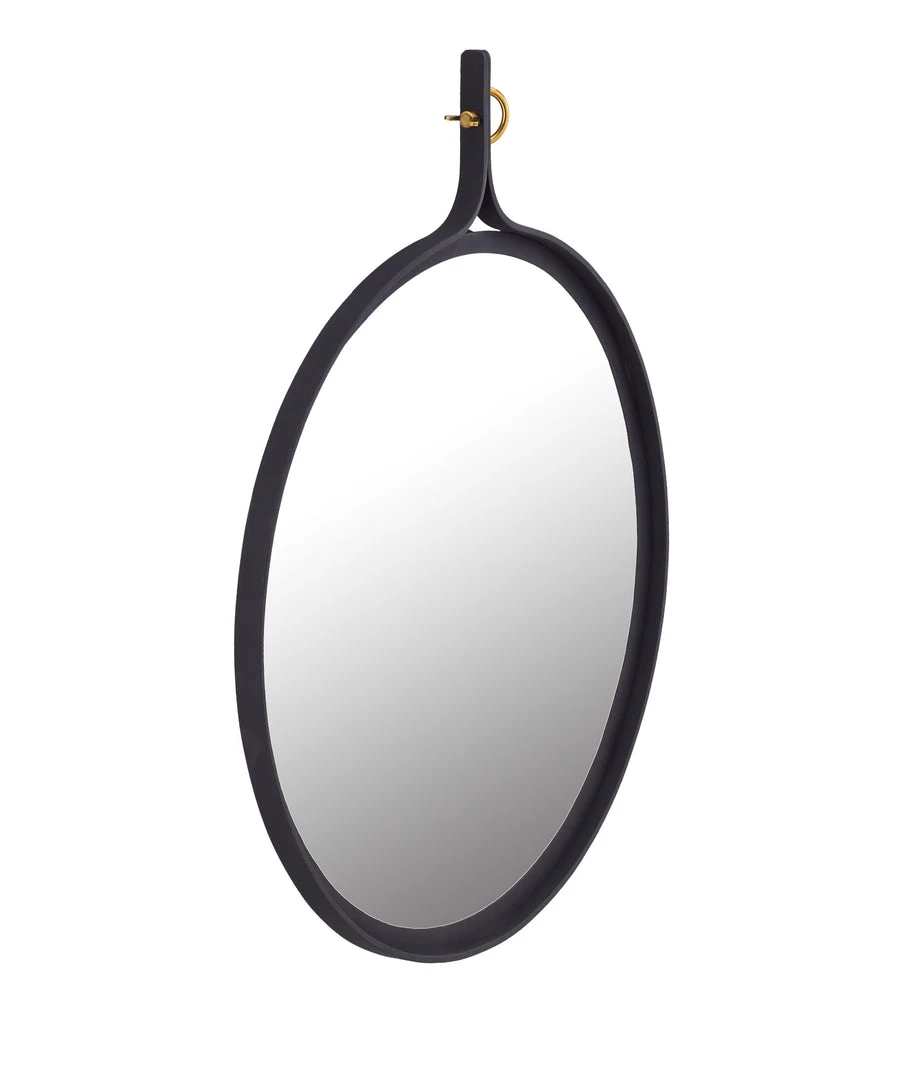 Designed with a round iron frame, simple gold ring detail, and versatile black finish, the Gia wall mirror works well in nearly any decor.