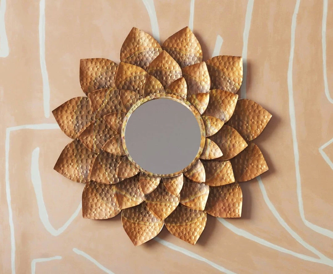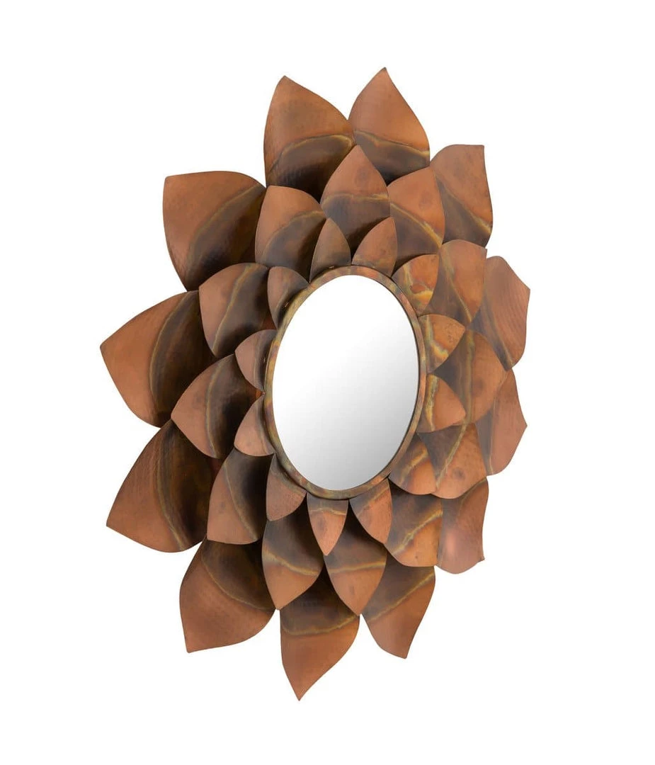 Three tiers of antique gold finished leaves border this mirror adding a stylish floral element to your space. Gorgeous and versatile, it’ll quickly become the focal point of your wall.
