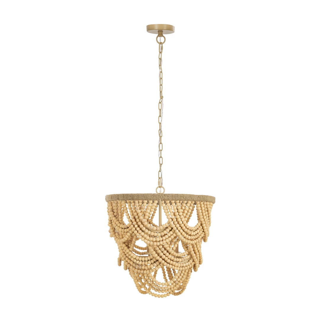 Dress your room with this unique take on the classic chandelier. Crafted of iron and with natural wrapped details and cascading rows of ombre beads, the Jade chandelier is sure to elements of texture and Bohemian style to your space.