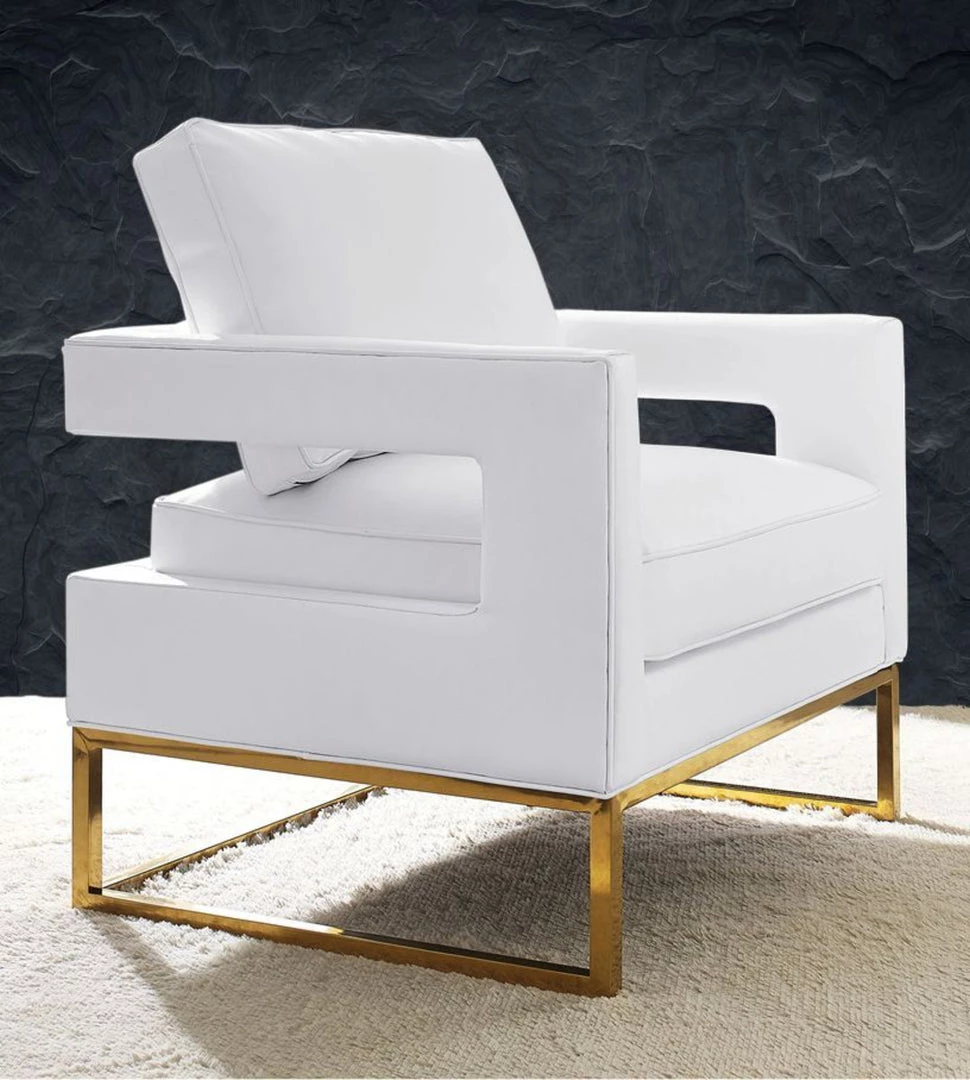 Inspired by our love for luxe, modern design the Avery chair radiates sophistication and grandeur. With a glossy gold finish and gorgeous curves, this chair is available in several sumptuous upholstery options. The Avery is a must-have for any room.