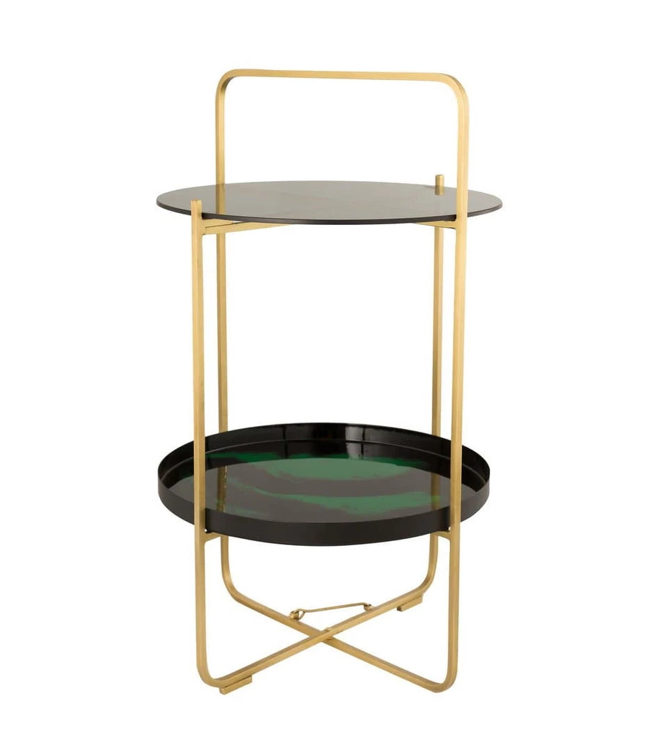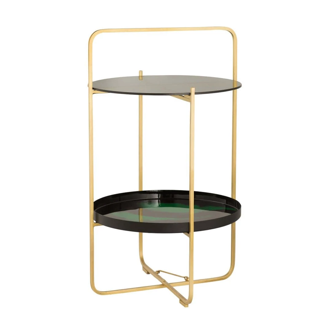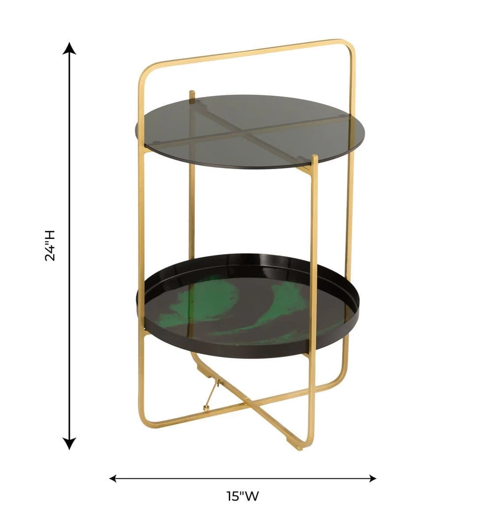 Crafted from gold-finished iron and flaunting a unique enamel tray and glass top, this side table is offered in two color options to match your fabulous style.