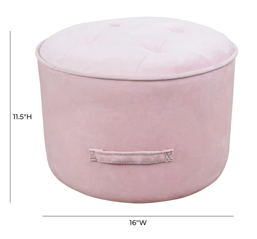 The Luna is a plush ottoman with button tufting adorning the top. The piped stitching and velvet upholstery lend to a clean look and sleek silhouette. Available in several fun color options.