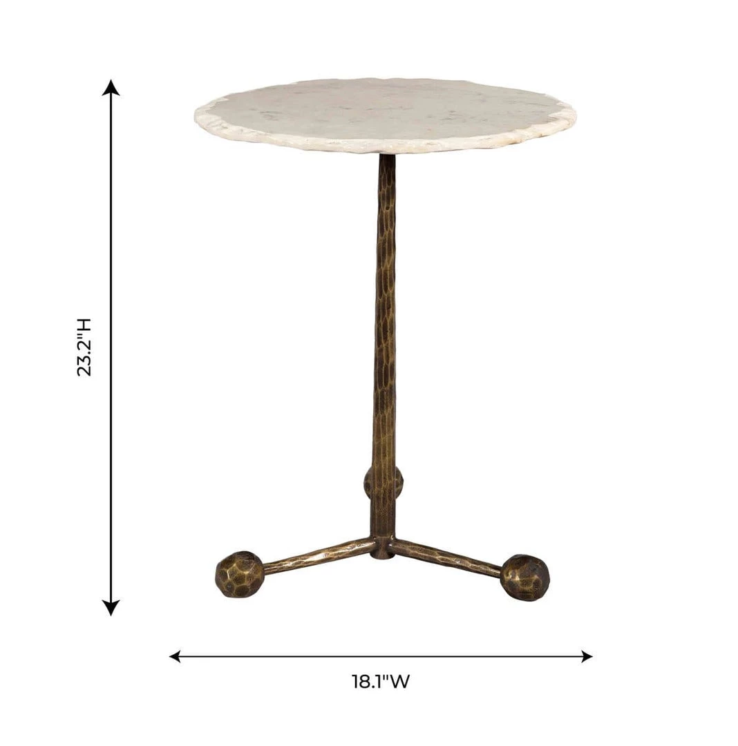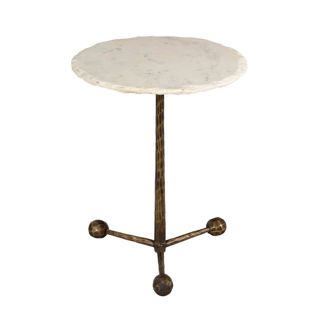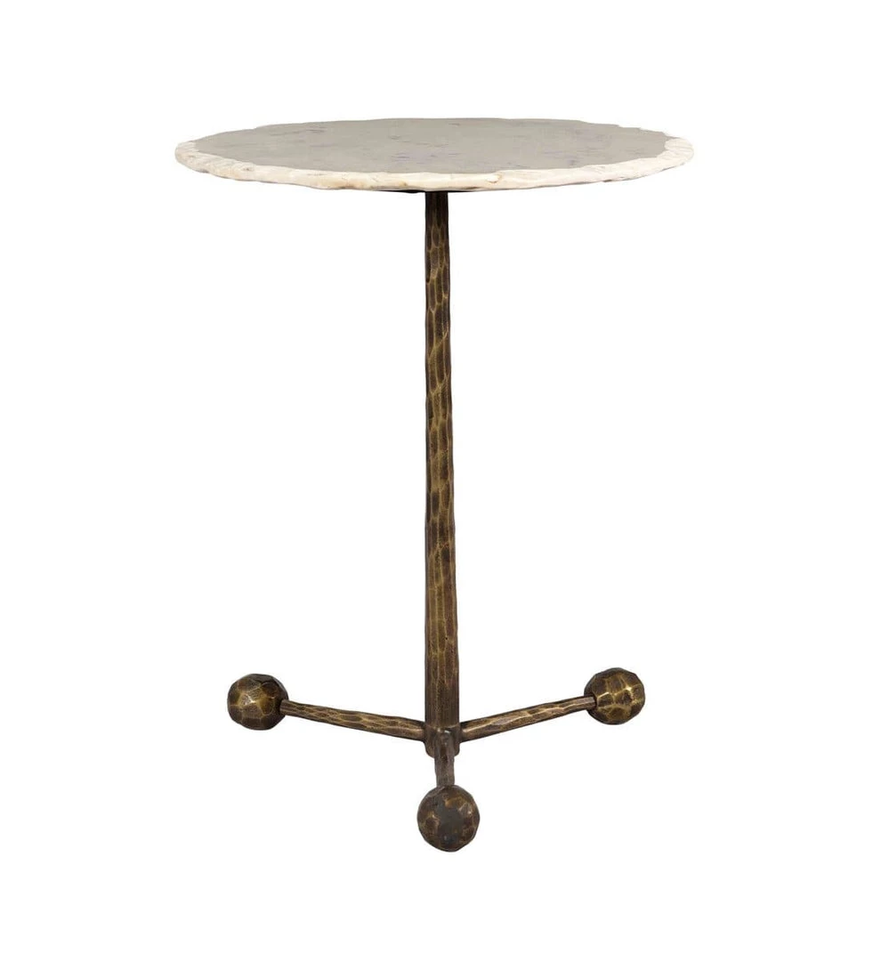 Supported by hand-hammered iron legs, the live-edged white marble top of this artisan-crafted table shows off incredible craftsmanship and wonderful texture. Available as a side and cocktail table, the Orbital table will add unique style Dimensions: 8.1″W x 18.1″D x 23.2″H