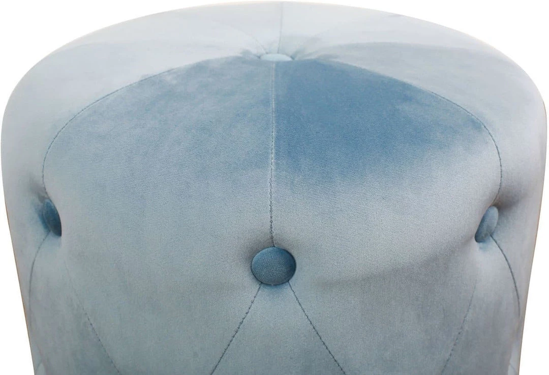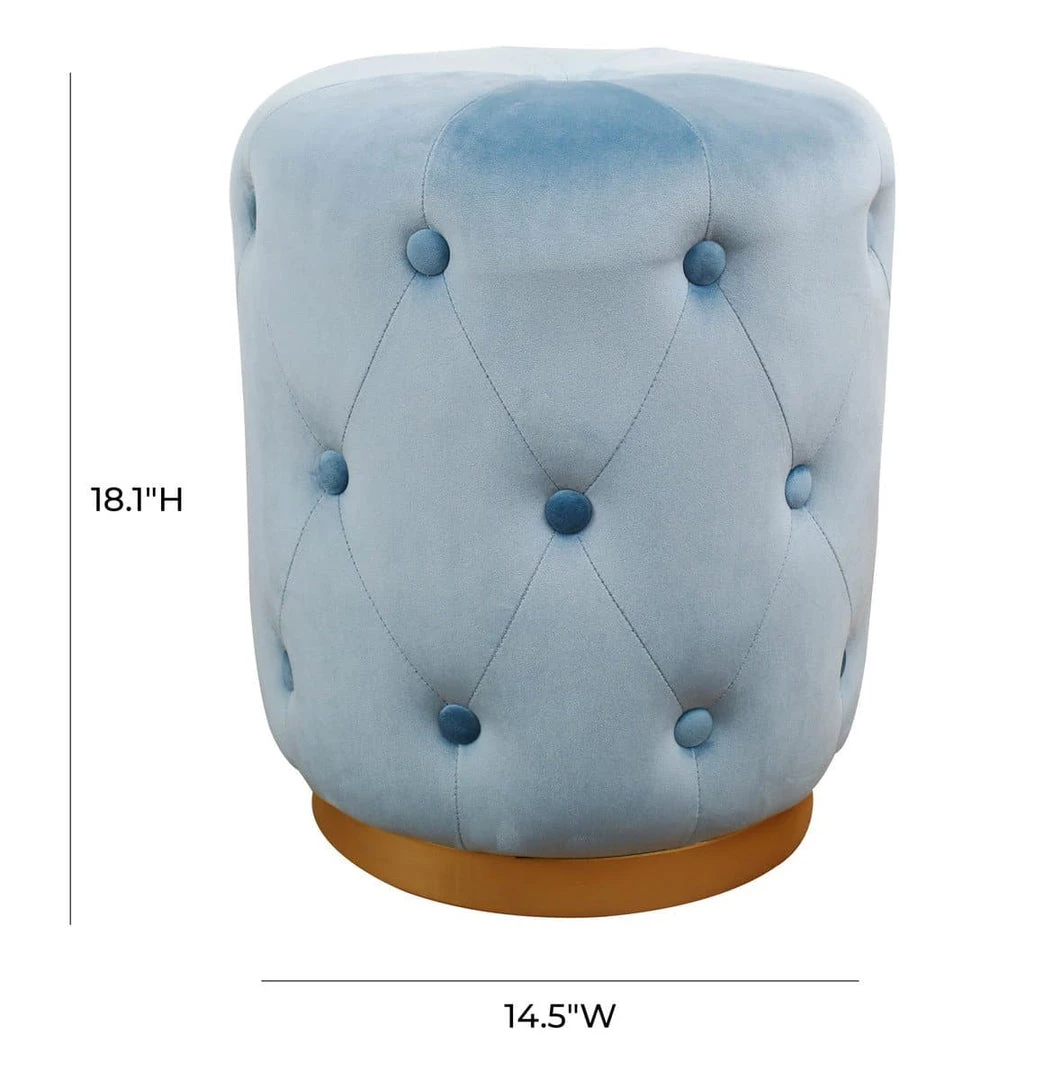 Muted hues and luxurious velvets define the Skylar ottoman. Adorned with button tufting and a recessed gold base it gives tribute to Hollywood glam style. Perfectly plush as a foot stool or extra seat, this ottoman is sure to please. Available in multiple color options.