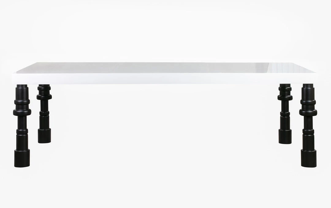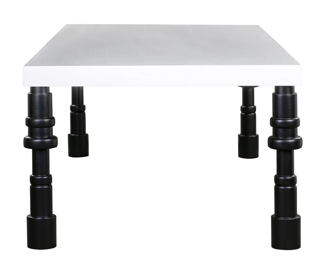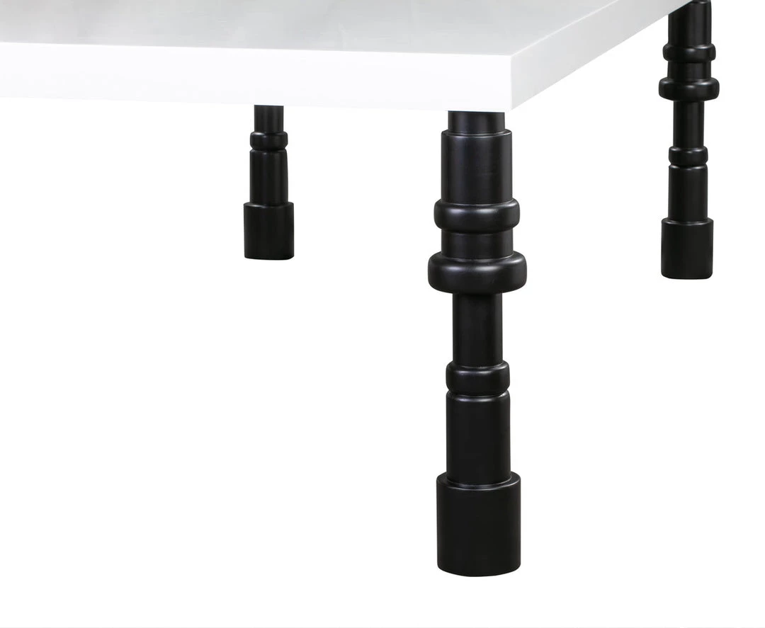 The Spindle dining table is the statement piece you’ve been looking for. Its glossy white lacquer top supported by four beautifully carved Acacia legs combine perfectly to add a transitional flair to your dining space.