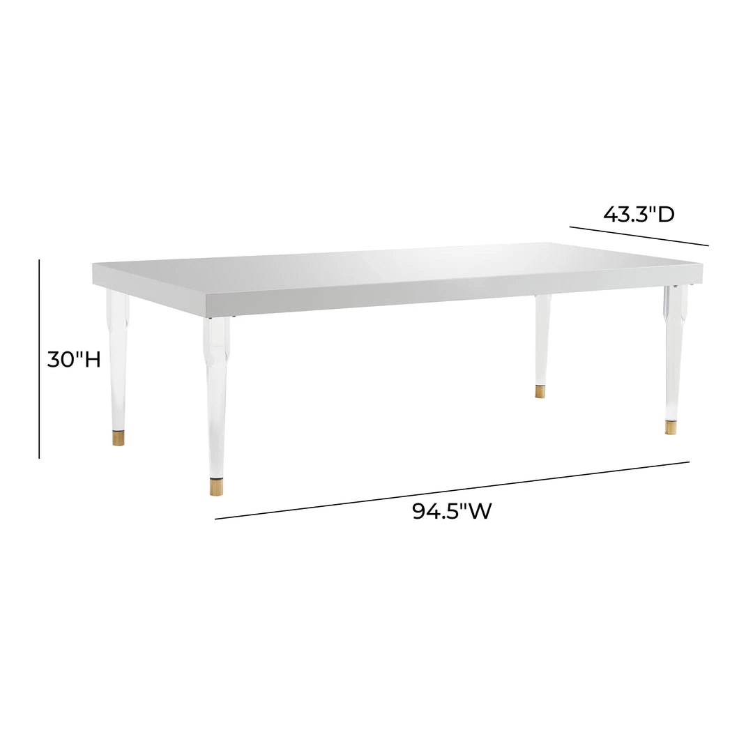 Inspired by our love for Hollywood glam decor the Spindle Tabby table is the statement piece you’ve been looking for. Its glossy white lacquer top complemented by its four transparent acrylic legs, combine perfectly to add a transitional flair to your dining space.