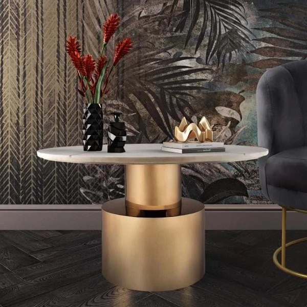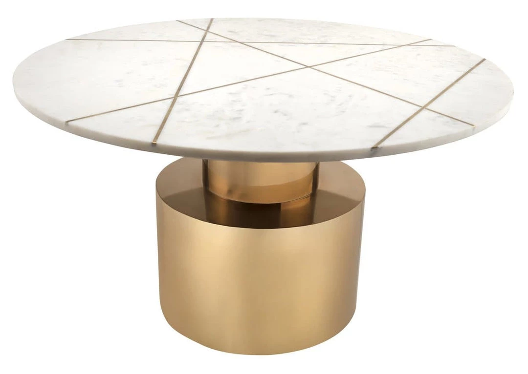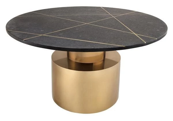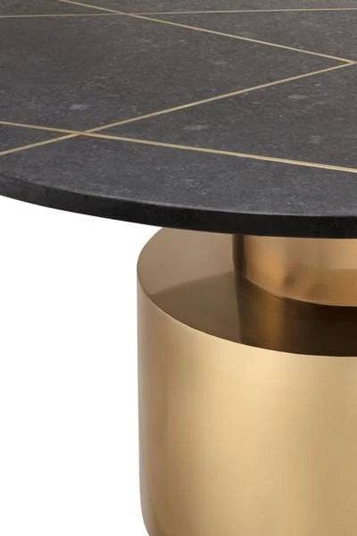 An absolute stunner, the Terzo is an instant eye-catcher. Perched upon a gold pedestal base, its marble top boasts a gold geometric design. Available in white or black marble and cocktail or side table sizes, this collection will enhance any space it placed. As this is a handmade product, slight variations are to be expected and may result in small gaps between the marble