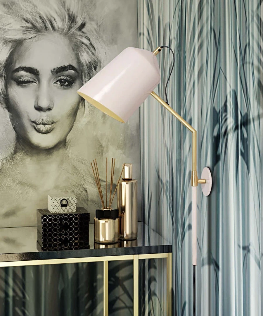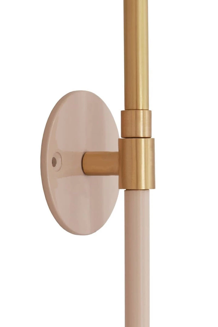 Beautifully trendy, the Zaphire wall sconce offers a modern enhancement for any space. Its blush conical shade and wall plate are offset by its angular brass neck.