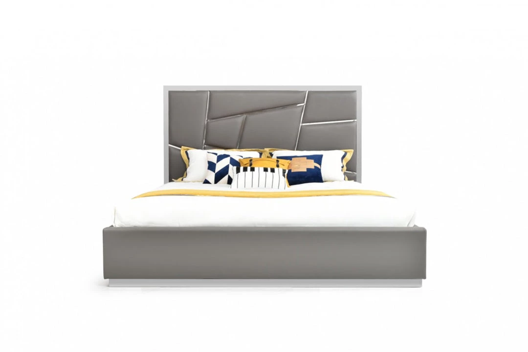 - Polished Stainless Steel Accented Headboard and Base