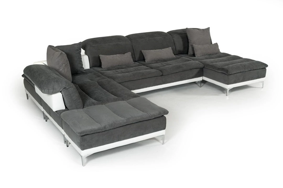 - Set includes: 2 Seater, 1 Seater, Chaise, Corner, Ottoman, and 7 Pillows