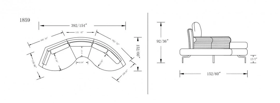 Overall: W154″ x D60″