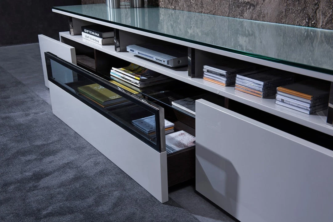 - Grey Tempered Glass In Upper Part of Middle Drawer