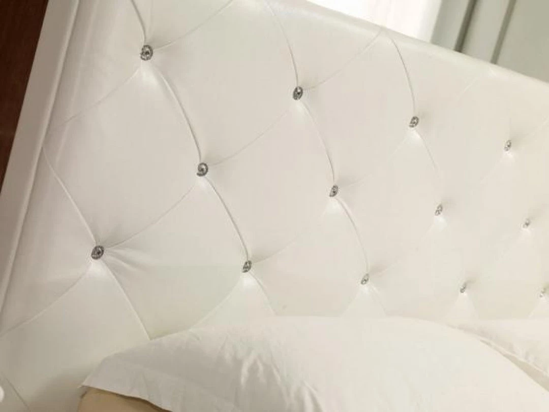 - Swarovski crystals embedded in the tufts of the leatherette wrapped bed