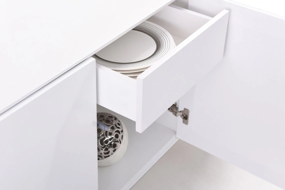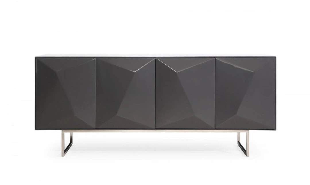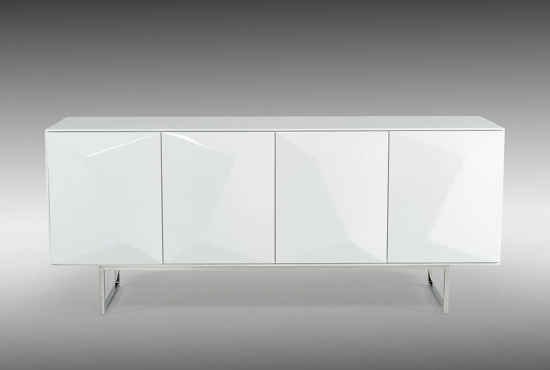 The Vanguard buffet features four geometrical spacious doors with touch latch hardware and square stainless steel legs. The white glossy finish makes this buffet perfect for any contemporary home. Pair with the Vanguard dining table and B878 dining chairs.