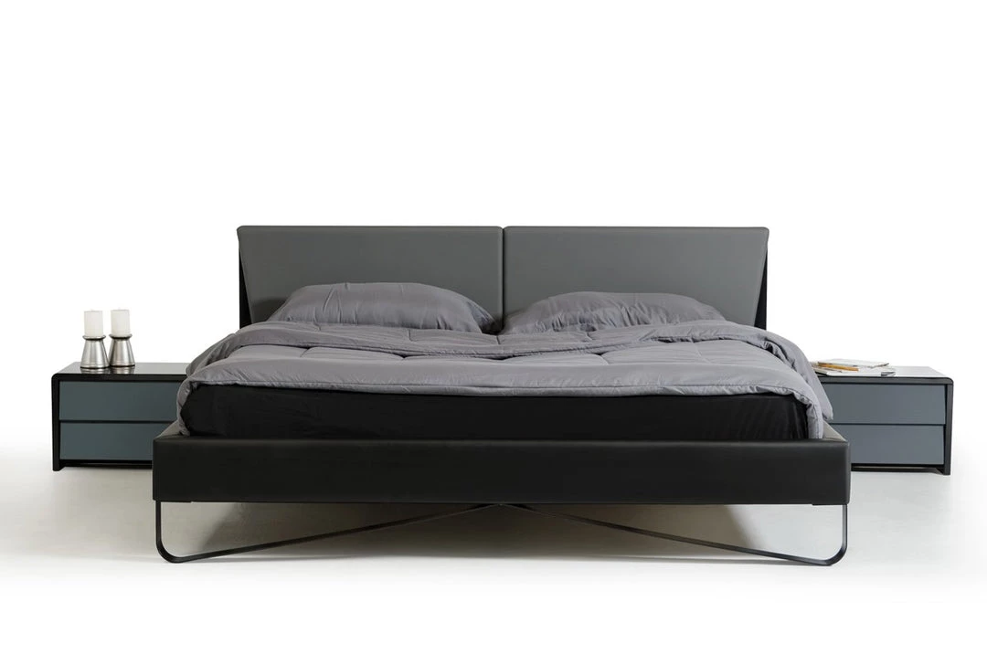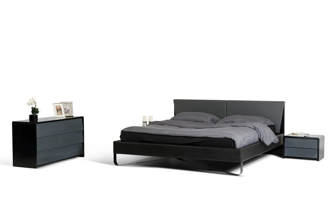 - Upholstered In Grey & Black Leatherette