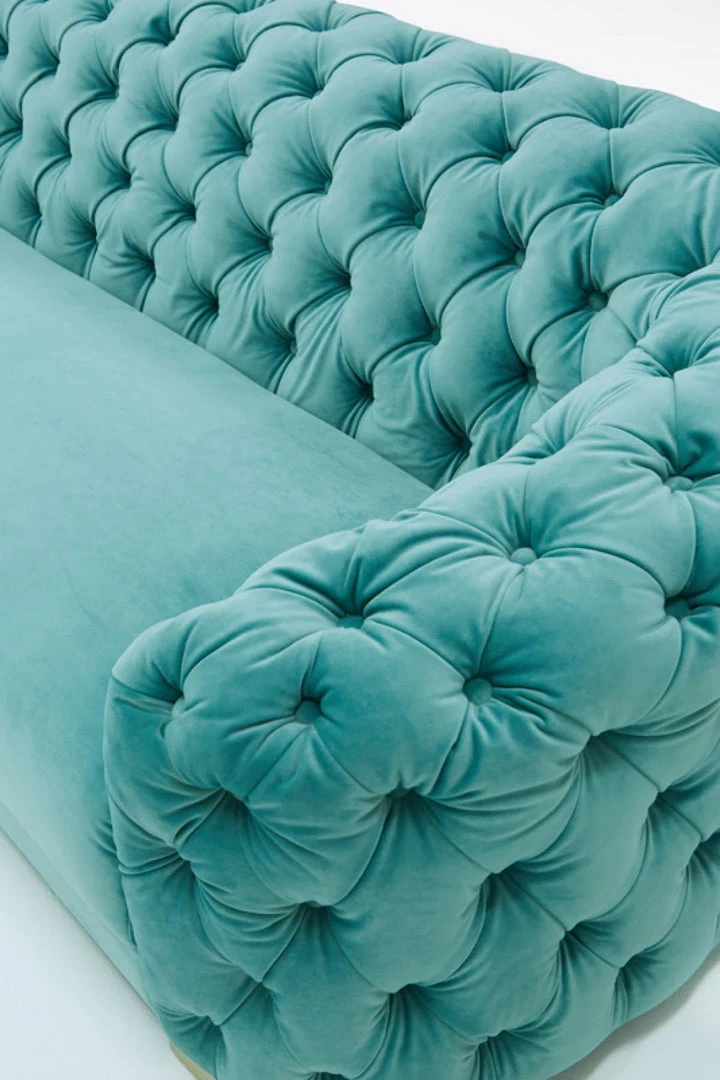 Reflecting your penchant for style and good looks is the Divani Casa Voss Modern Blue Velvet Sofa. The cool blue velvet fabric upholstery calms anybody’s senses. It features a dapper streamlined design with button tufts that highlighted its glitzy side. The back stretches out to form part of the slightly oblique arms that stress convenience and comfort. Gold metal legs provide sturdy support. This modern sofa gives your family and friends cozy seating while anchoring your other seating and keeping your modern home theme intact.